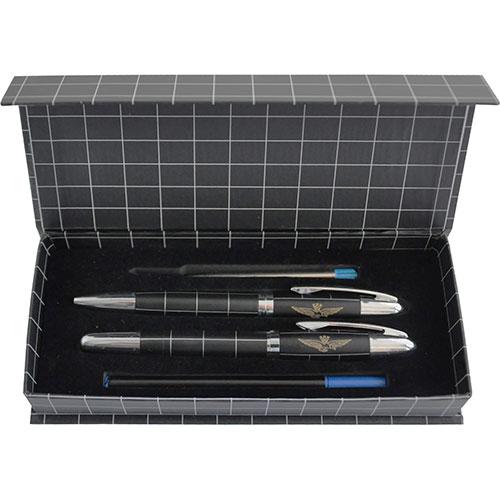 SET PENNA A SFERA E ROLLER IN METALLO FUSTO IN OTTONE , REFIL BLU + 2 REFIL DI RICAMBIO , ASTUCCIO REGALO NON PERSONALIZZATO