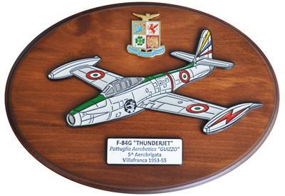 CREST ARALDICO AEREI F-84G THUNDERJET GUIZZO VILLAFRANCA 1953-55 AERONAUTICA MILITARE MIS CM 22,5 X 17,5