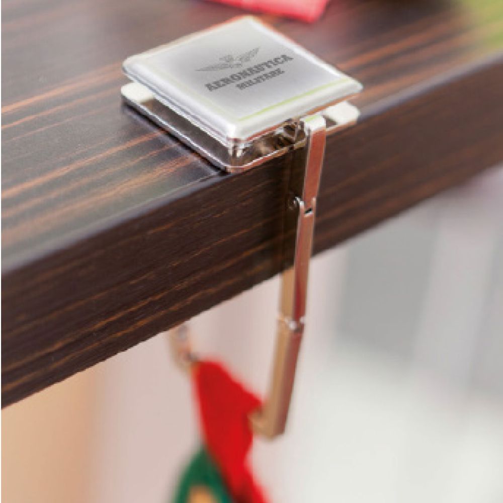 APPENDIBORSA RIPIEGABILE IN ACCIAIO, FONDO GOMMATO PER UN SICURO FISSAGGIO SU TAVOLINI