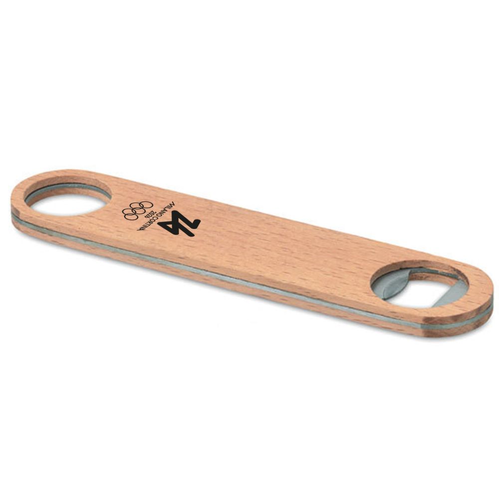 APRIBOTTIGLIE ACCIAIO LEGNO H 175 MM OLYMPIC EMBLEMA MONOCROMATICO NERO