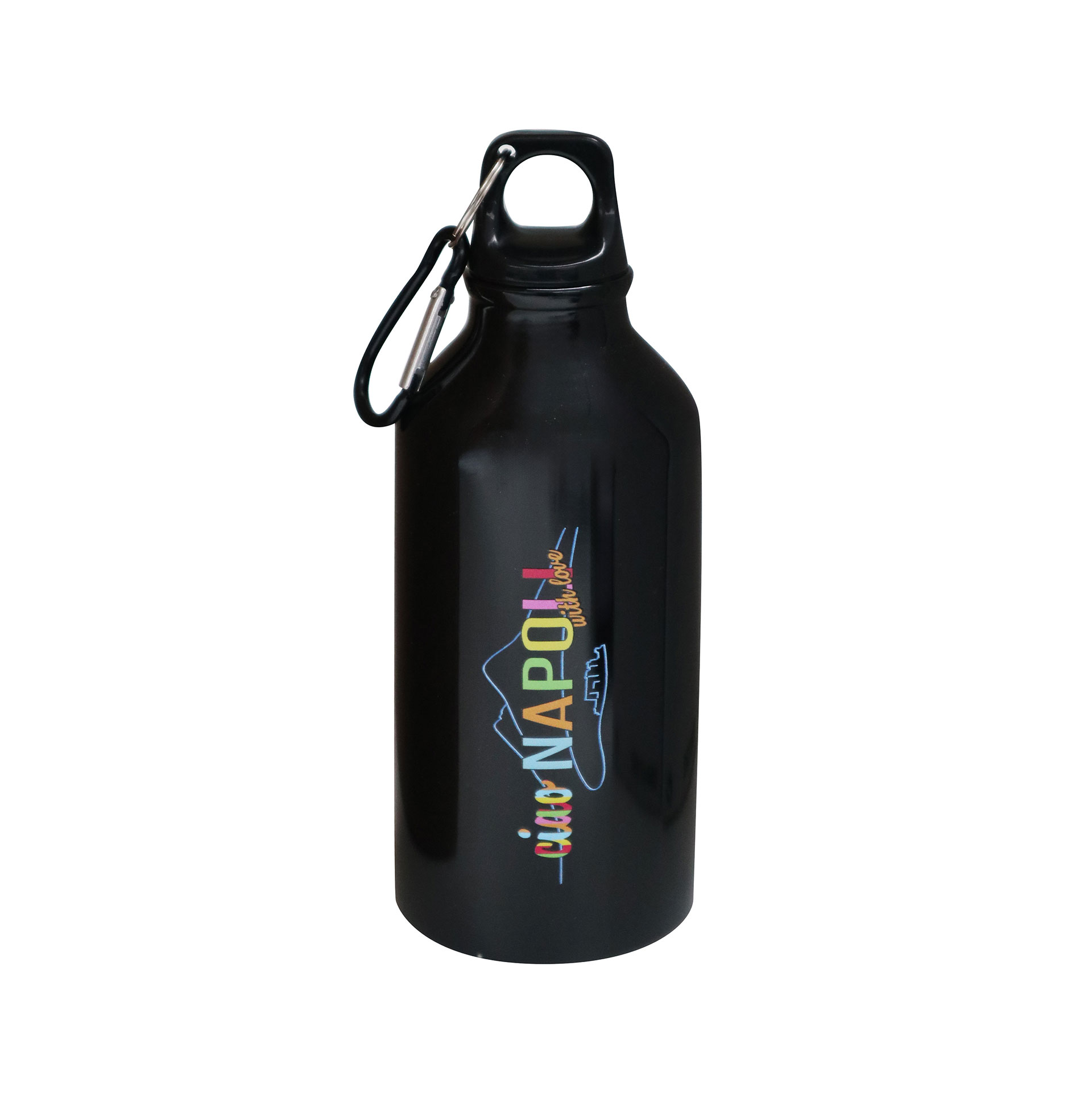 BORRACCIA NERA IN ALLUMINIO CON MOSCHETTONE 400 ML NAPOLI WITH LOVE