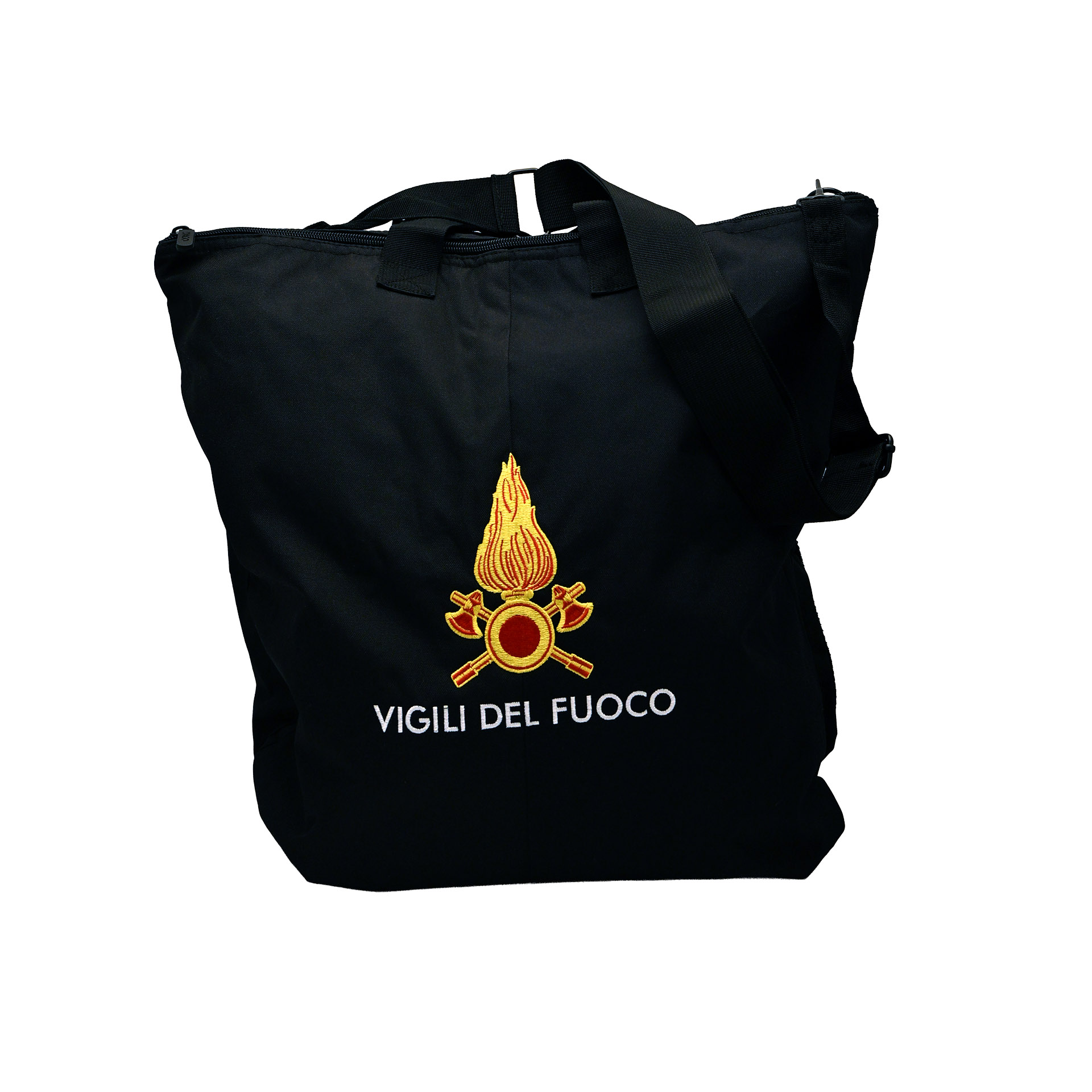 BORSA PORTACASCO NERA VIGILI DEL FUOCO CON TRACOLLA 48X51 CM