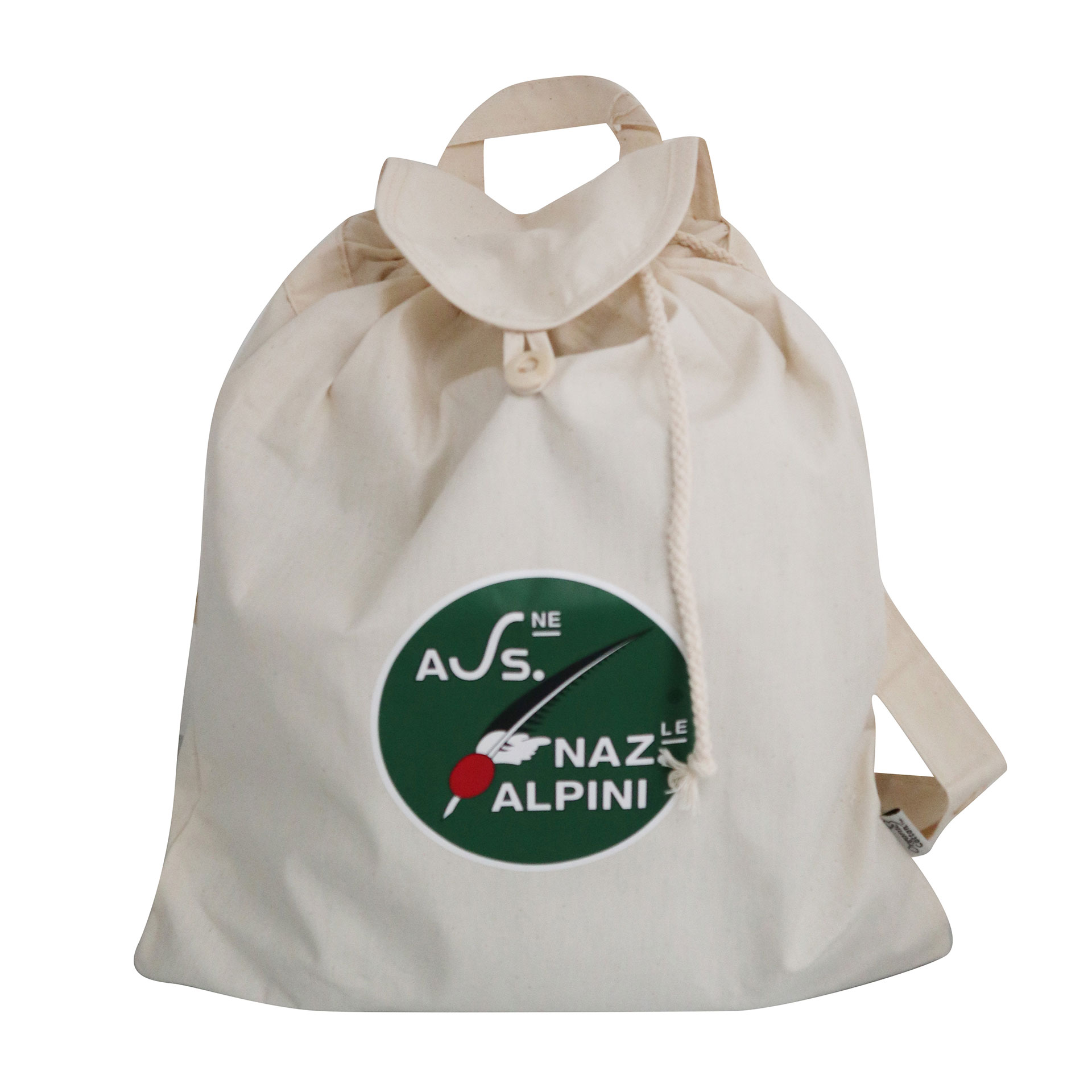 ZAINO SACCA IN COTONE CHIUSURA CORDONCINO E BOTTONE IN LEGNO LOGO ANA