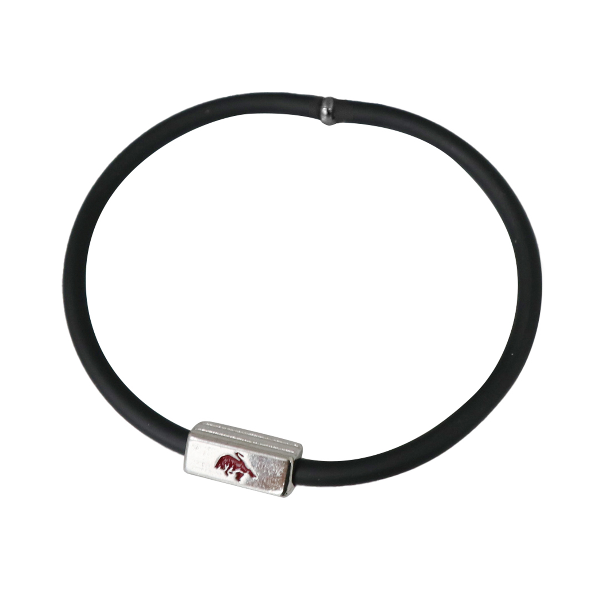 BRACCIALE IN SILICONE NERO CON PIASTRINA IN METALLO SMALTATA TORO OLD