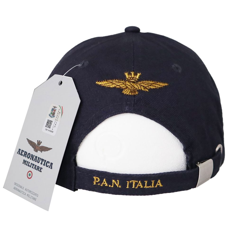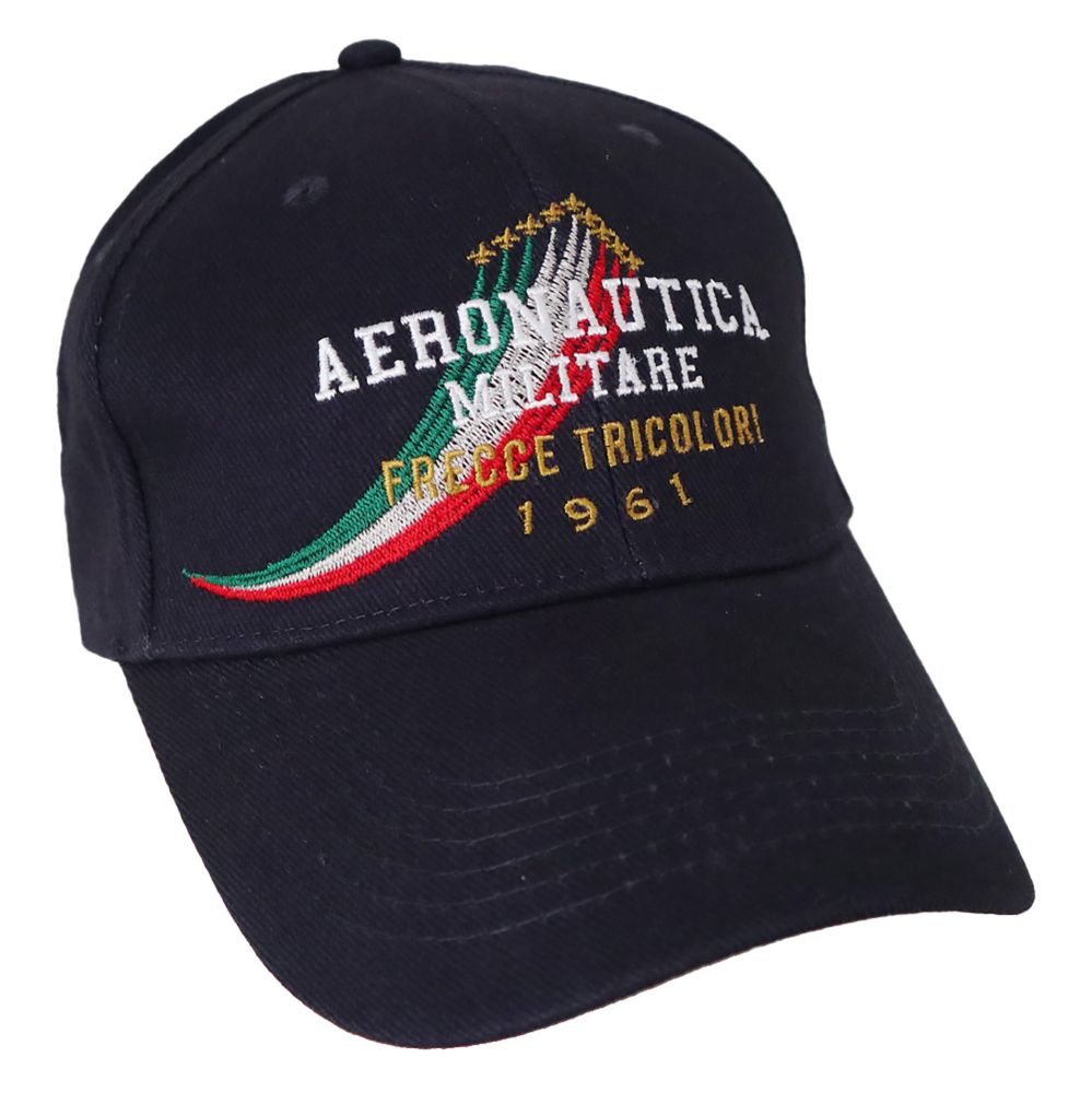CAPPELLINO IN COTONE BLU LOGO FRONTALE E VISIERA FRECCE TRICOLORI RETRO P.A.N.