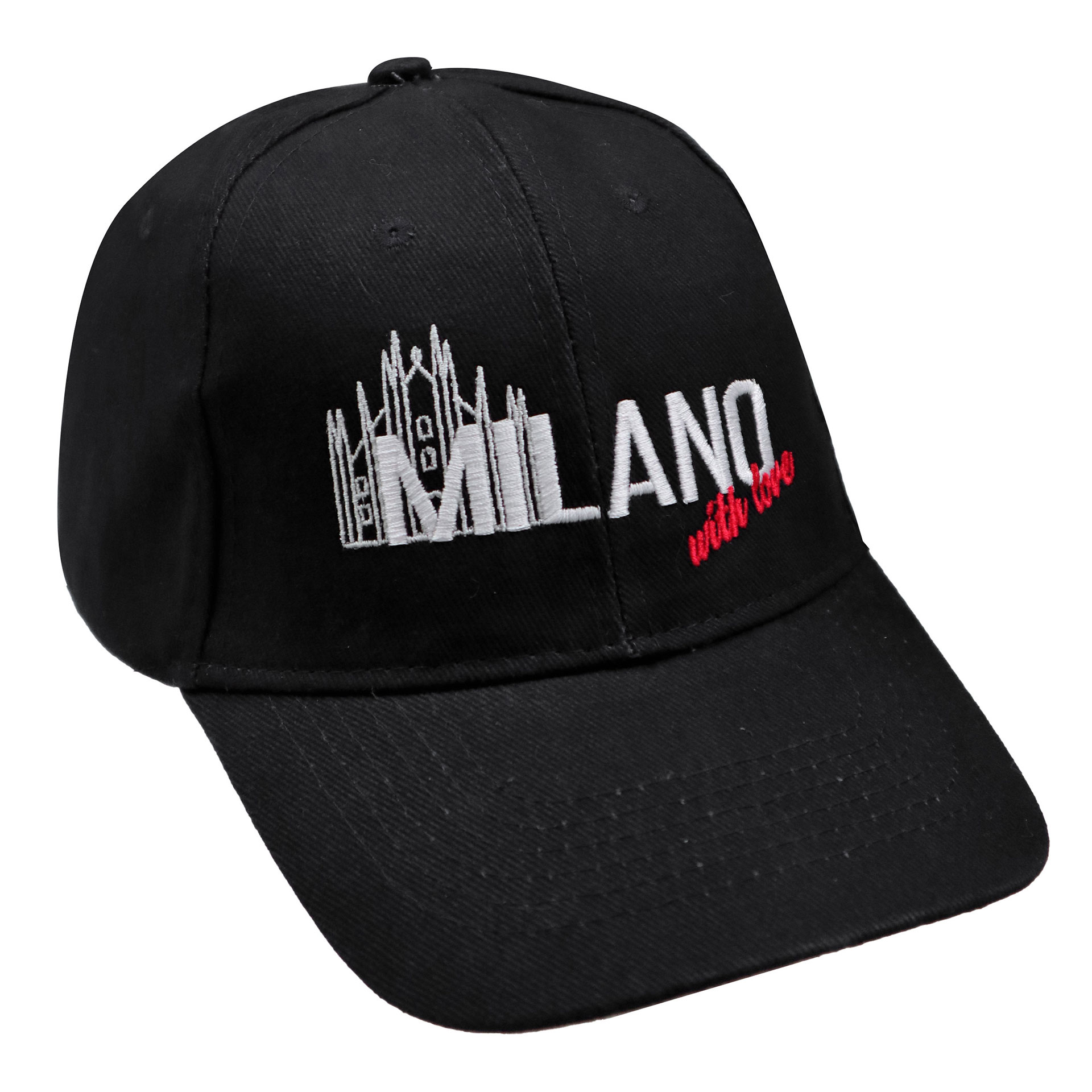 CAPPELLINO CON VISIERA IN COTONE NERO, RICAMO MILANO WITH LOVE