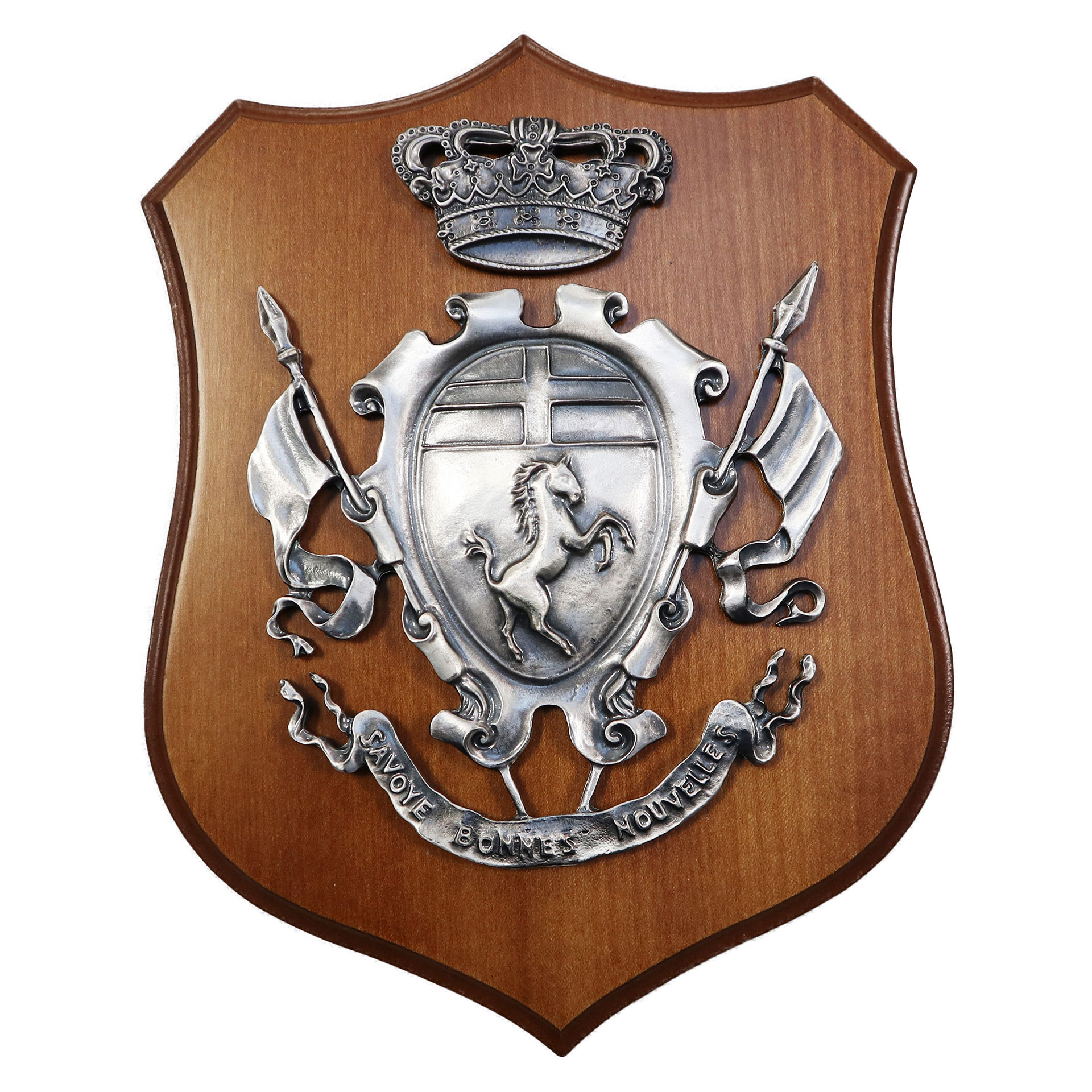 CREST IN METALLO SMALTATO BASE LEGNO 22,5X17,5CM 17 SAVOIA CAVALLERIA 3D
