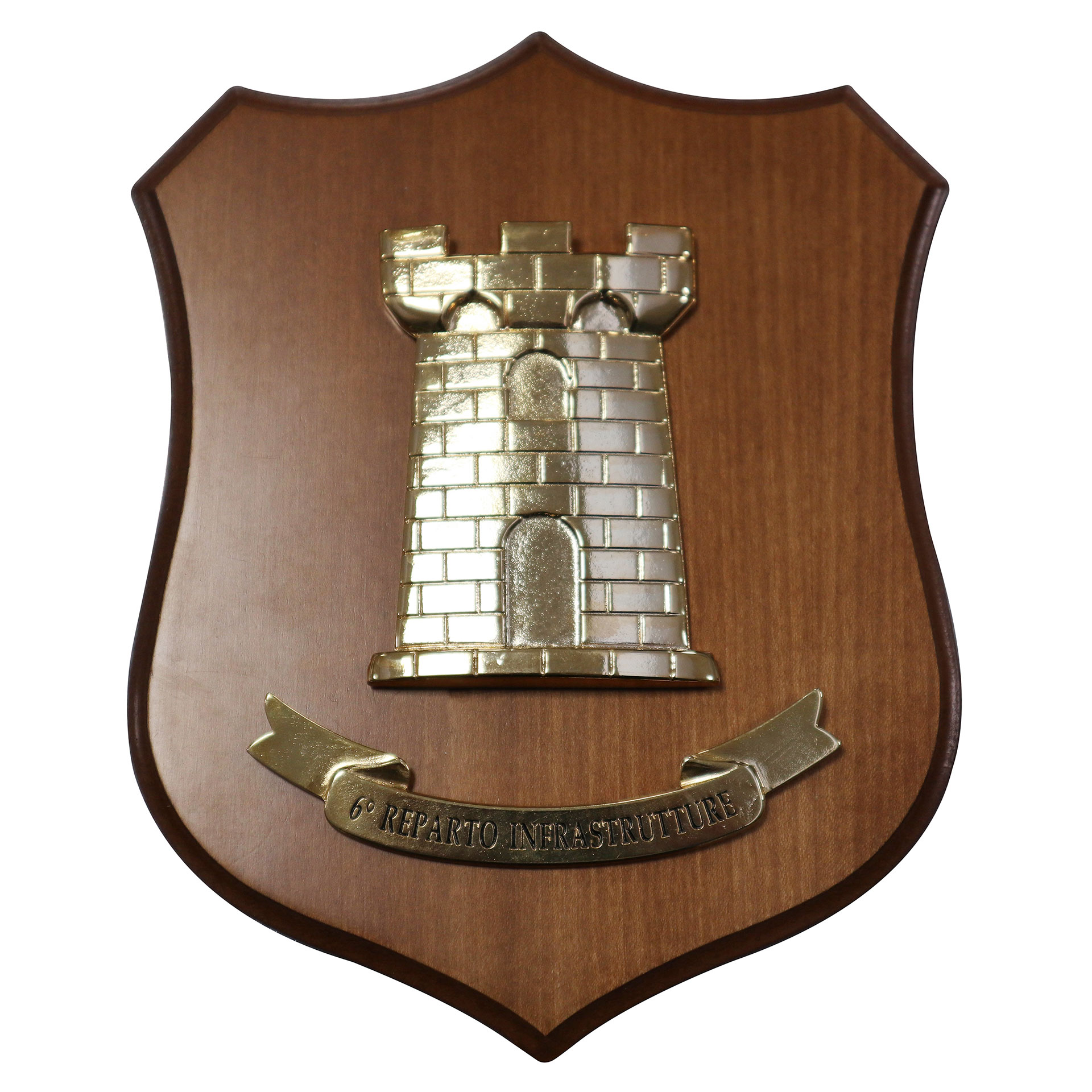 CREST IN METALLO SMALTATO BASE LEGNO 22,5X17,5CM 3D 6 REP INFRASTRUTTURE