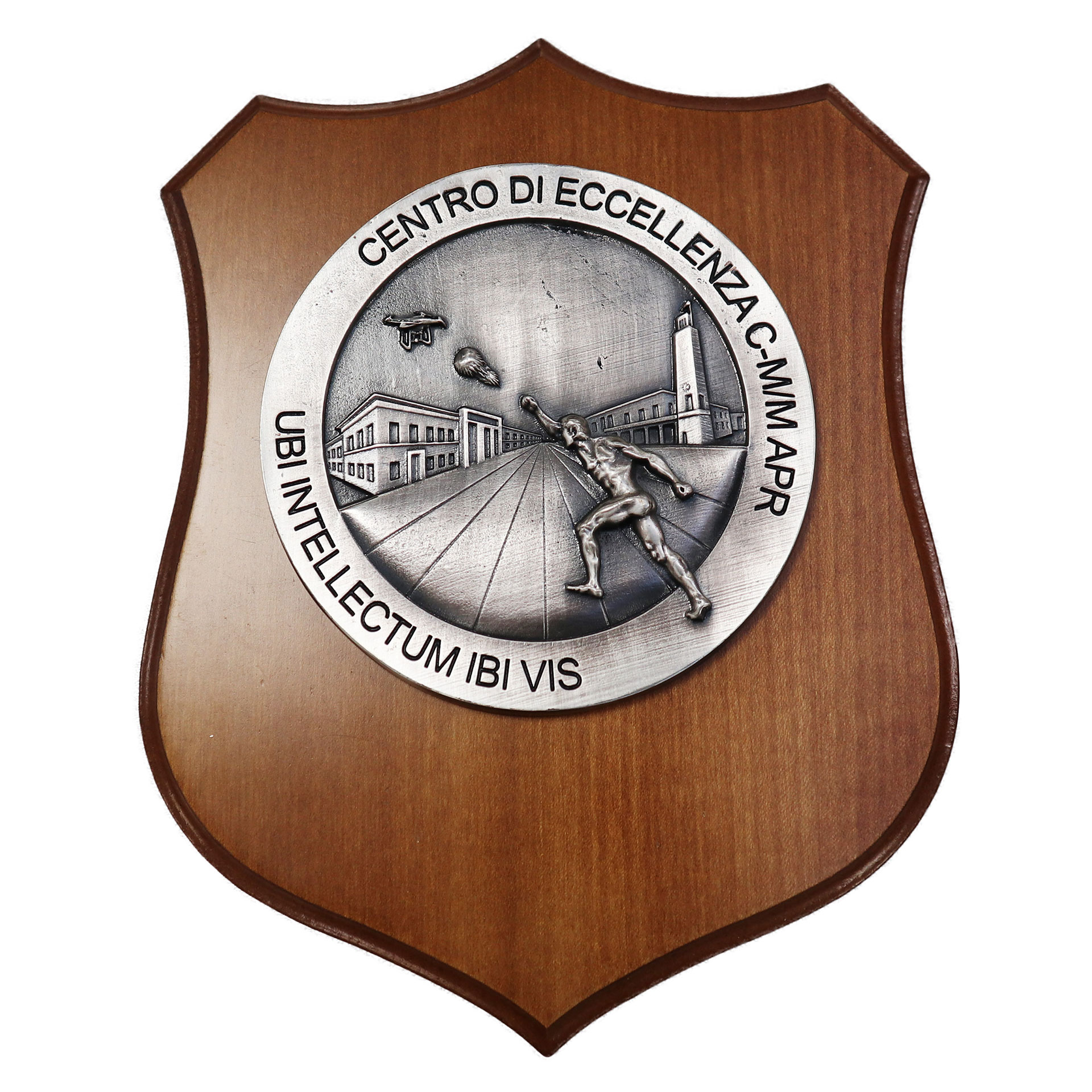 CREST IN METALLO SMALTATO BASE LEGNO 22,5X17,5CM CENTRO DI ECCELLENZA