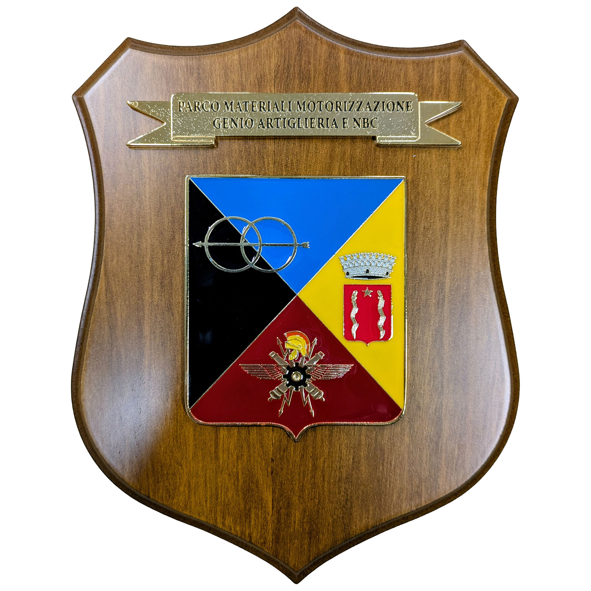CREST IN METALLO SMALTATO LEGNO CL3 22 X 17 CM PARCO MATERIALI MOTORIZZAZIONE GENIO ARTIGLIERIA NBC