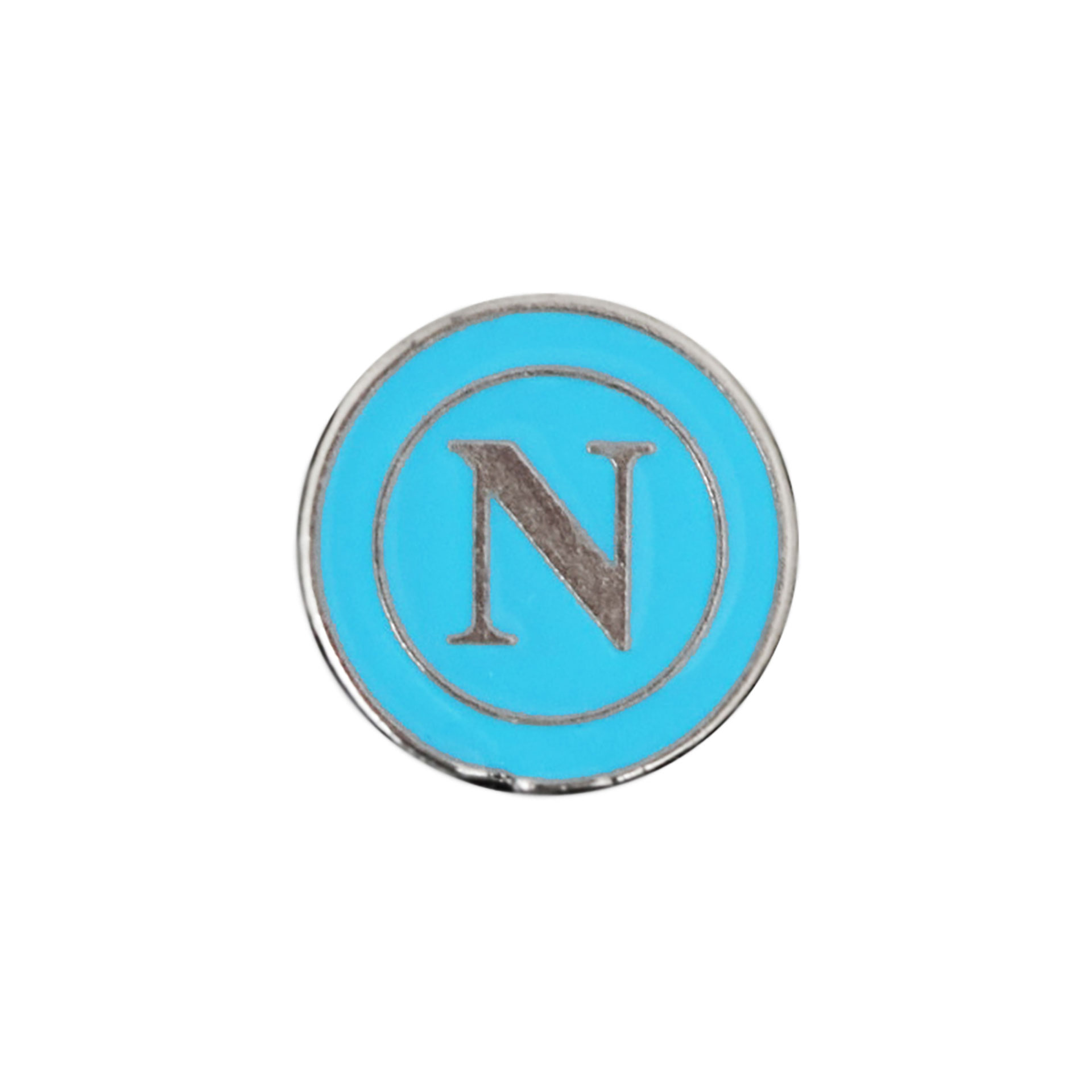 DISTINTIVO SMALTATO GRANDE CON LOGO NAPOLI METALLICO SU FONDO CELESTE