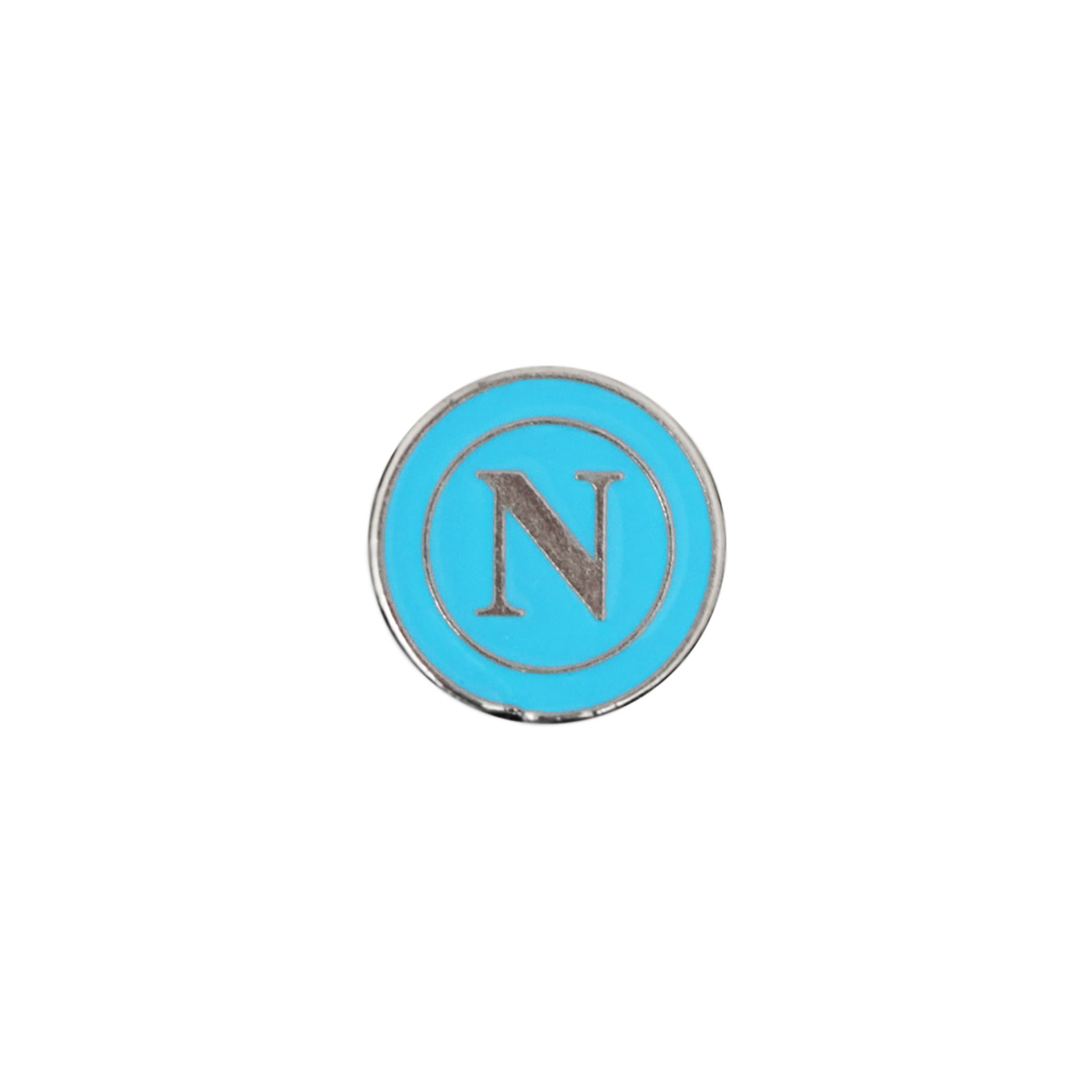 DISTINTIVO SMALTATO PICCOLO CON LOGO NAPOLI METALLICO SU FONDO CELESTE
