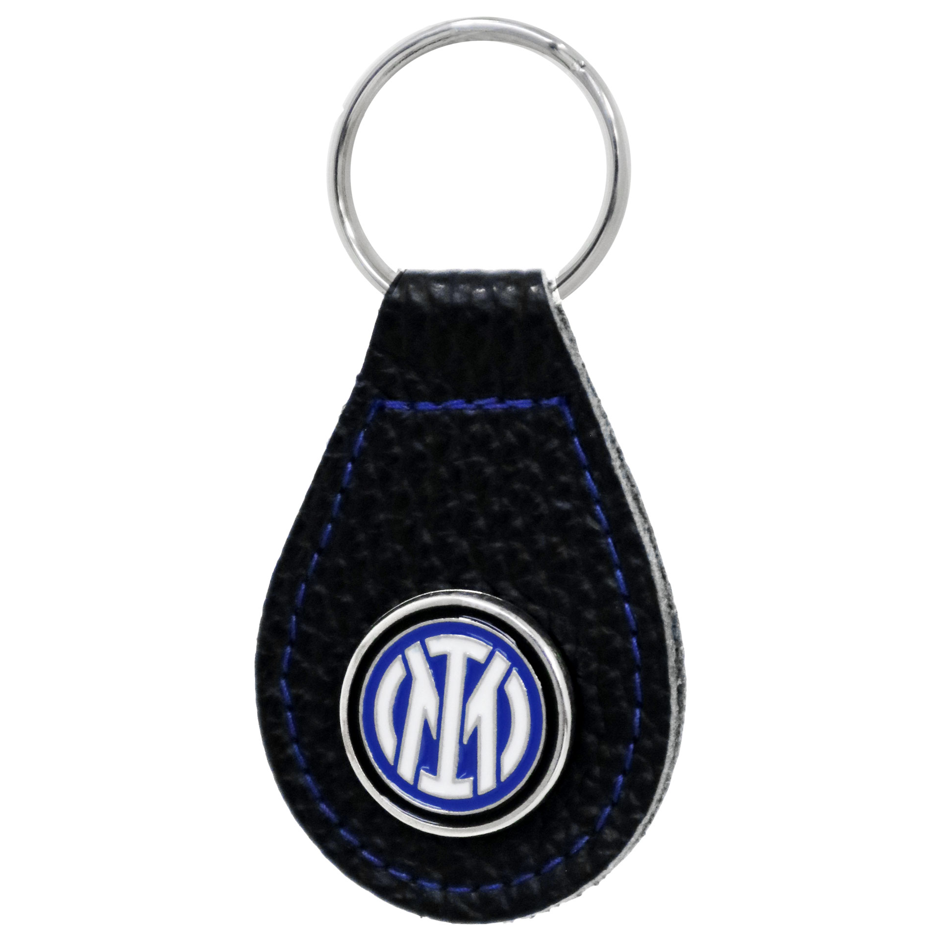 Portachiavi in pelle con borchia in metallo dorato con logo ufficiale Inter smaltato a mano.