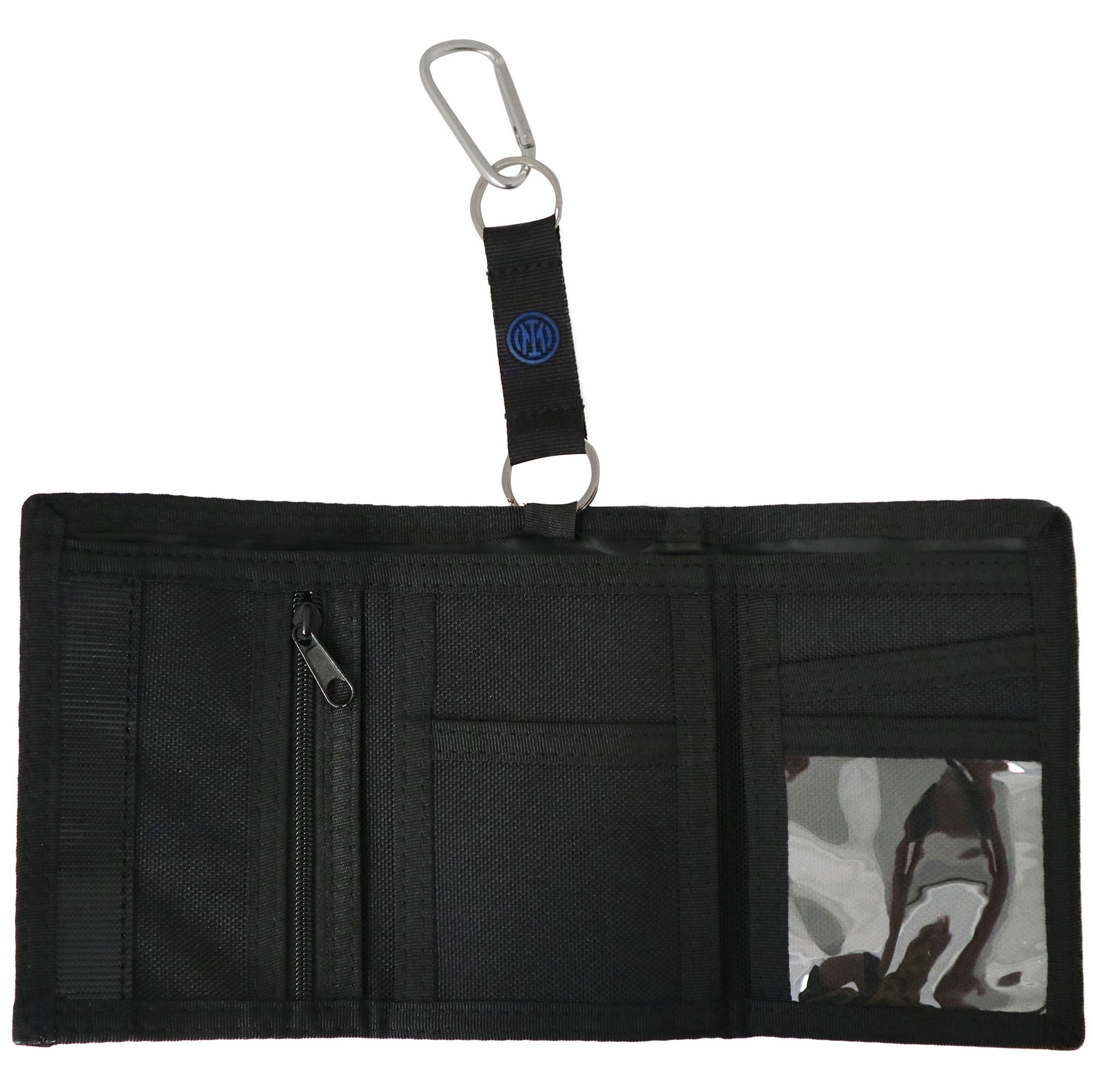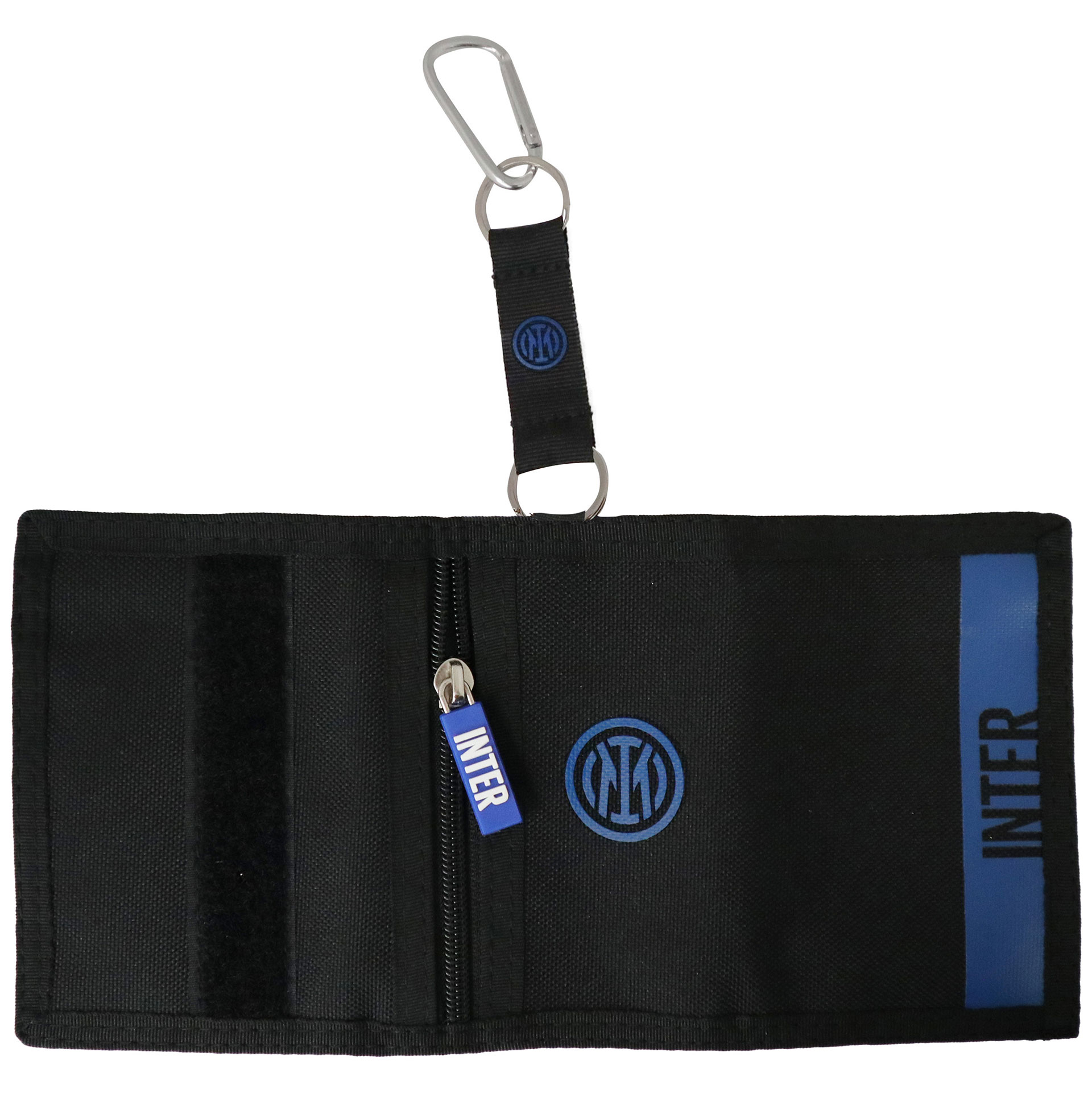 Portachiavi con moschettone e portasoldi con chiusura a velcro.