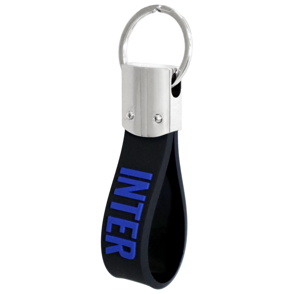 Portachiavi in gomma con logo e scritta ufficiali Inter in rilievo.