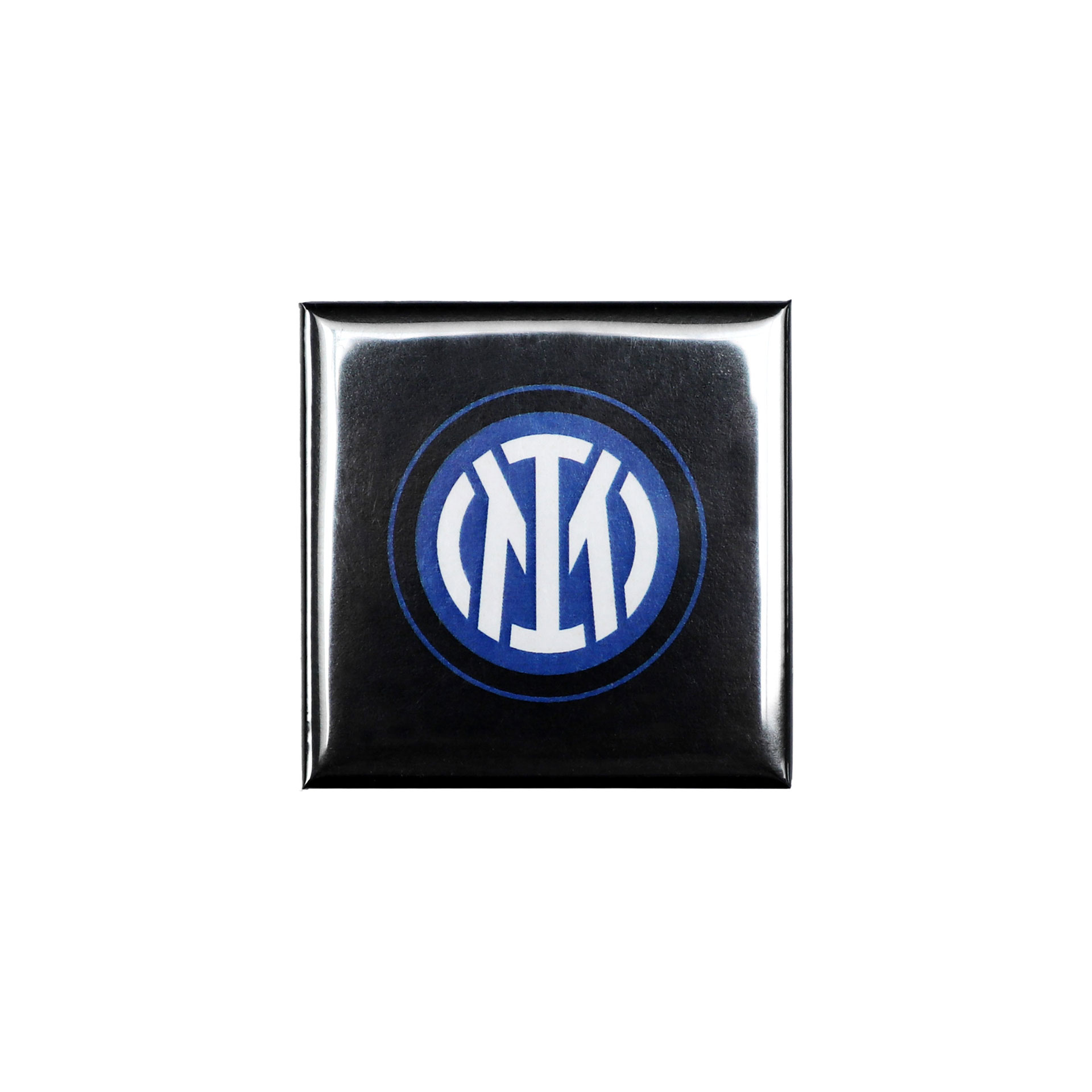 Magnete in metallo plastificato con logo ufficiale Inter su fondo nero.