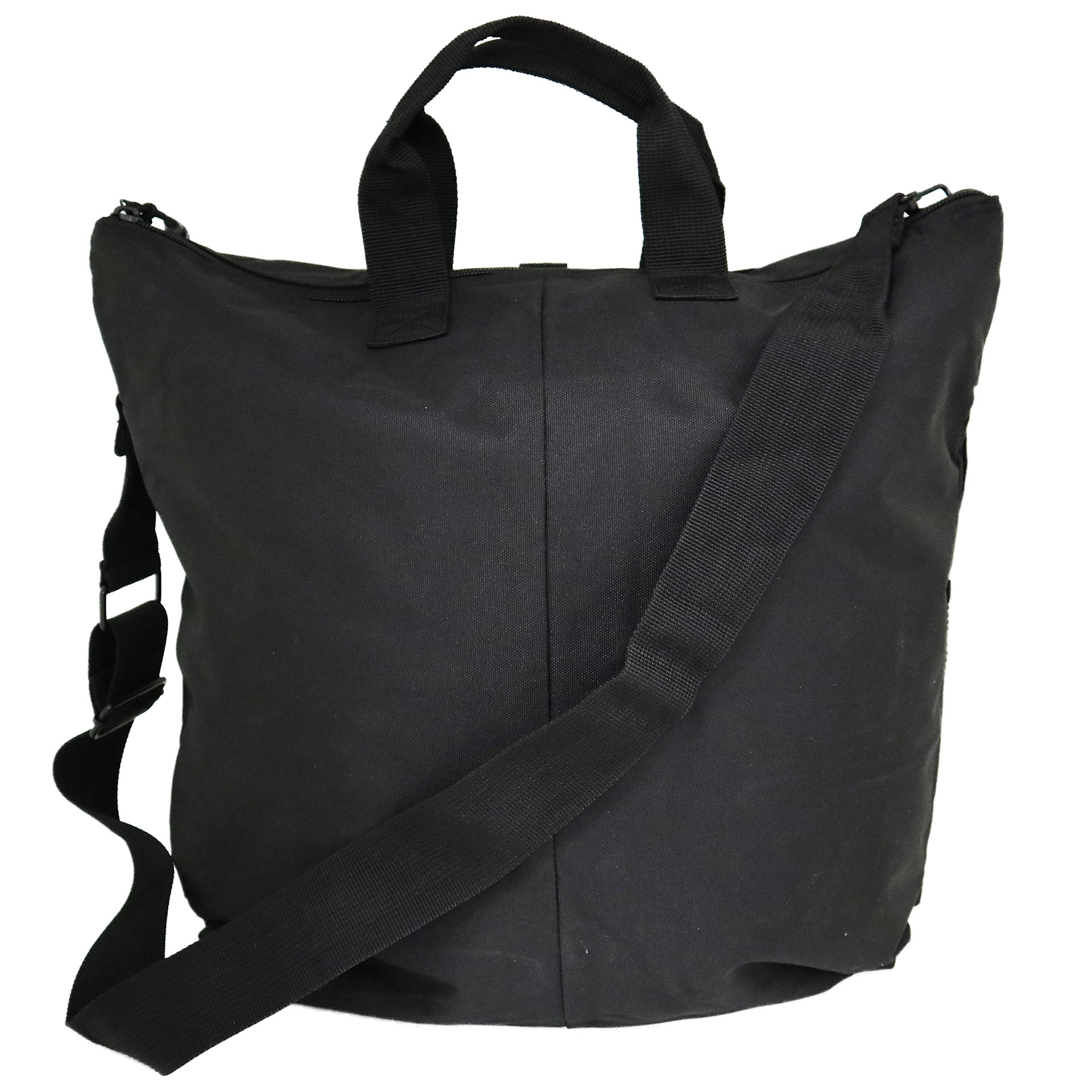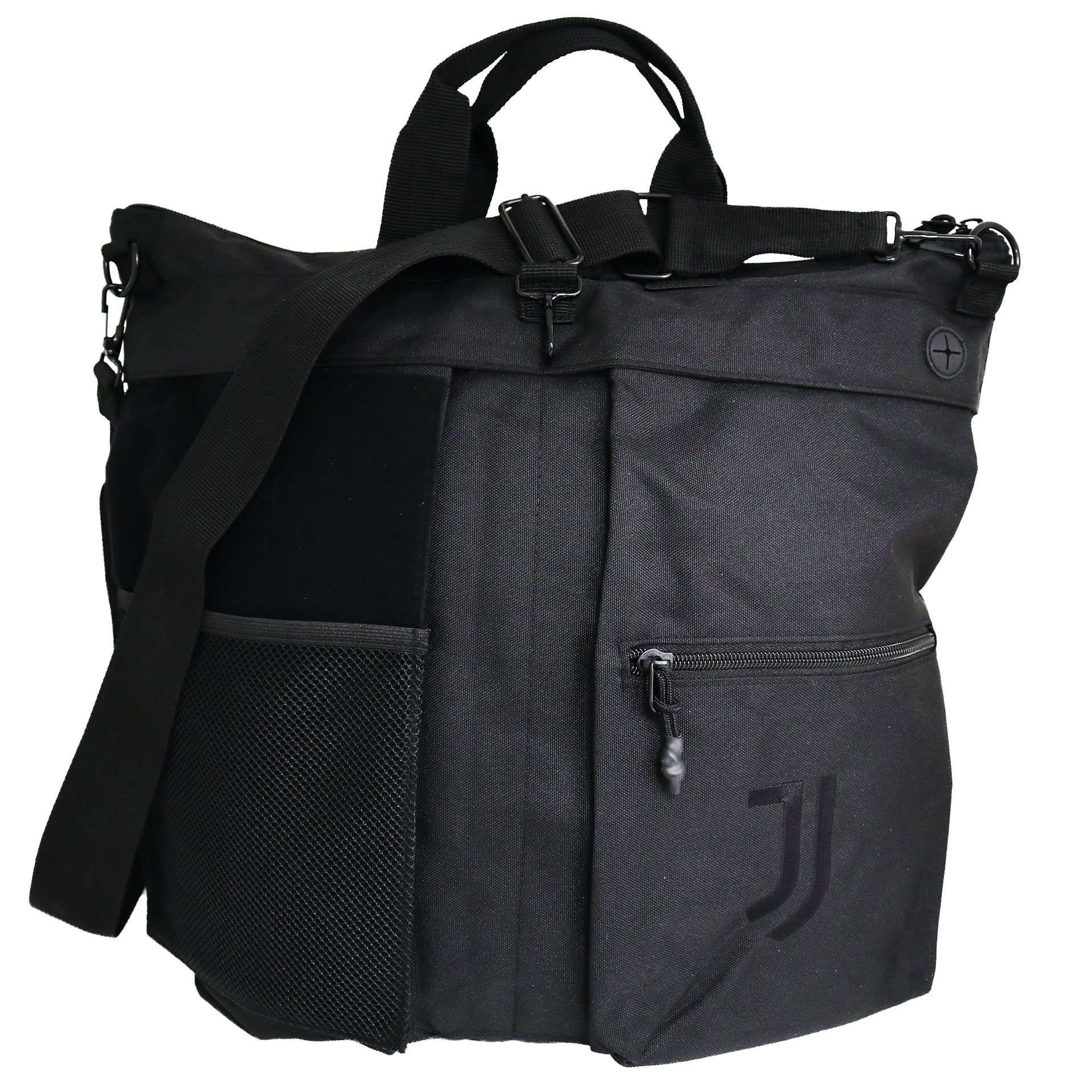 BORSA NERA IN POLIESTERE 600D, TRACOLLA, 2 TASCHE FRONTALI, 3 TASCHE INTERNE, HELMET BAG JUVENTUS. DIMENSIONE L 50 X H 53 CM