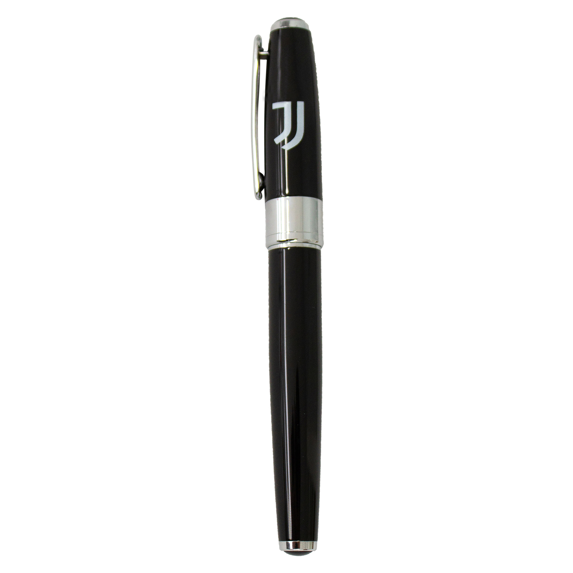 Penna modello roller in ottone con fusto laccato nero e logo ufficiale Juventus FC.