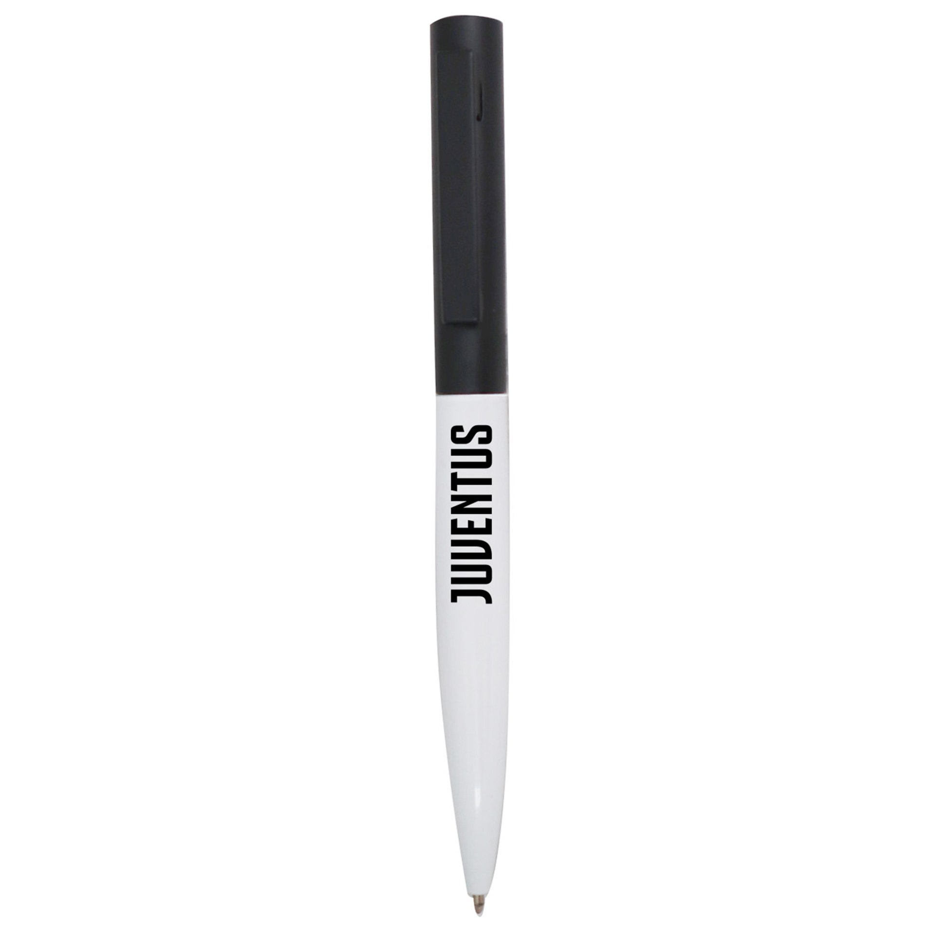 PENNA A SFERA IN METALLO CON FUSTO BIANCO E CLIP NERA IN TUBO TRASPARENTE JUVENTUS
