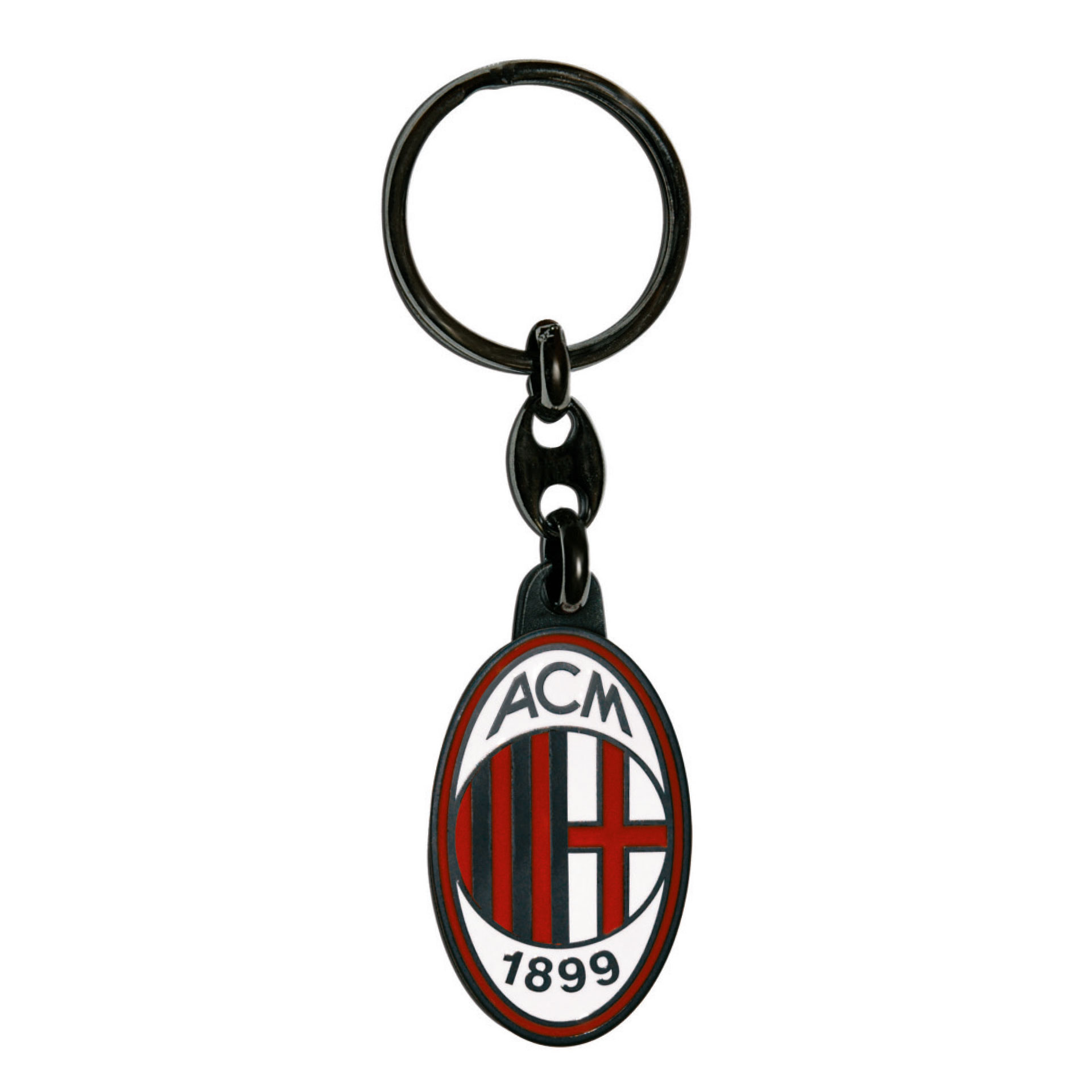 Portachiavi in metallo trattato nero con logo ufficiale Milan smaltato a mano.