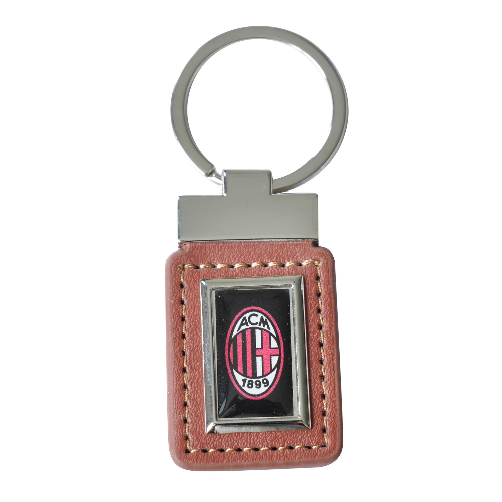 Portachiavi a forma rettangolare in similpelle con logo ufficiale Milan.