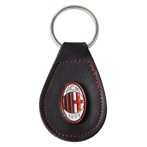 Portachiavi in pelle con borchia in metallo dorato con logo ufficiale AC Milan smaltato a mano.