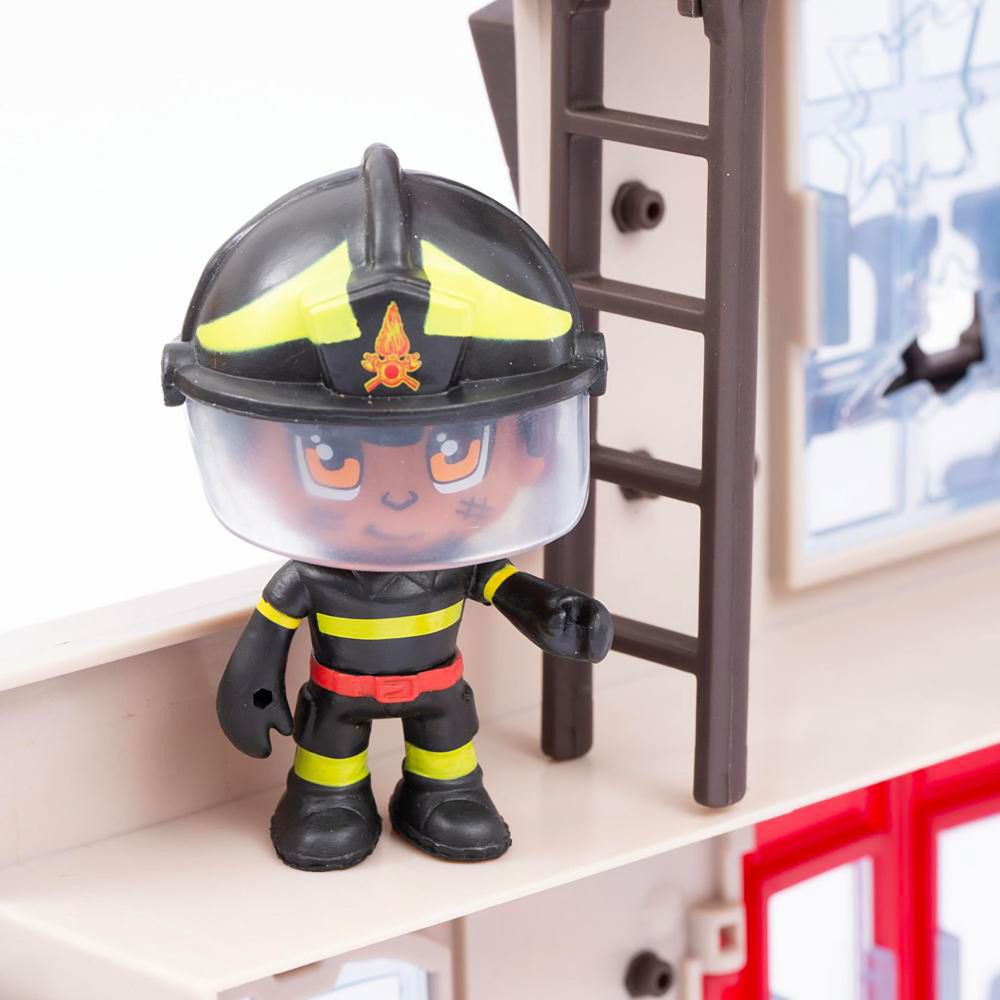 PALAZZO IN FIAMME CON TANTI DETTAGLI PER CREARE L'EMERGENZA, VEICOLO A RUOTA LIBERA CON VANO PER ACCESSORI VIGILI DEL FUOCO, INCLUSO PERSONAGGIO ARTICOLATO CON TANTI ACCESSORI PER RICREARE LA SITUAZIONE DI EMERGENZA E SOCCORSO