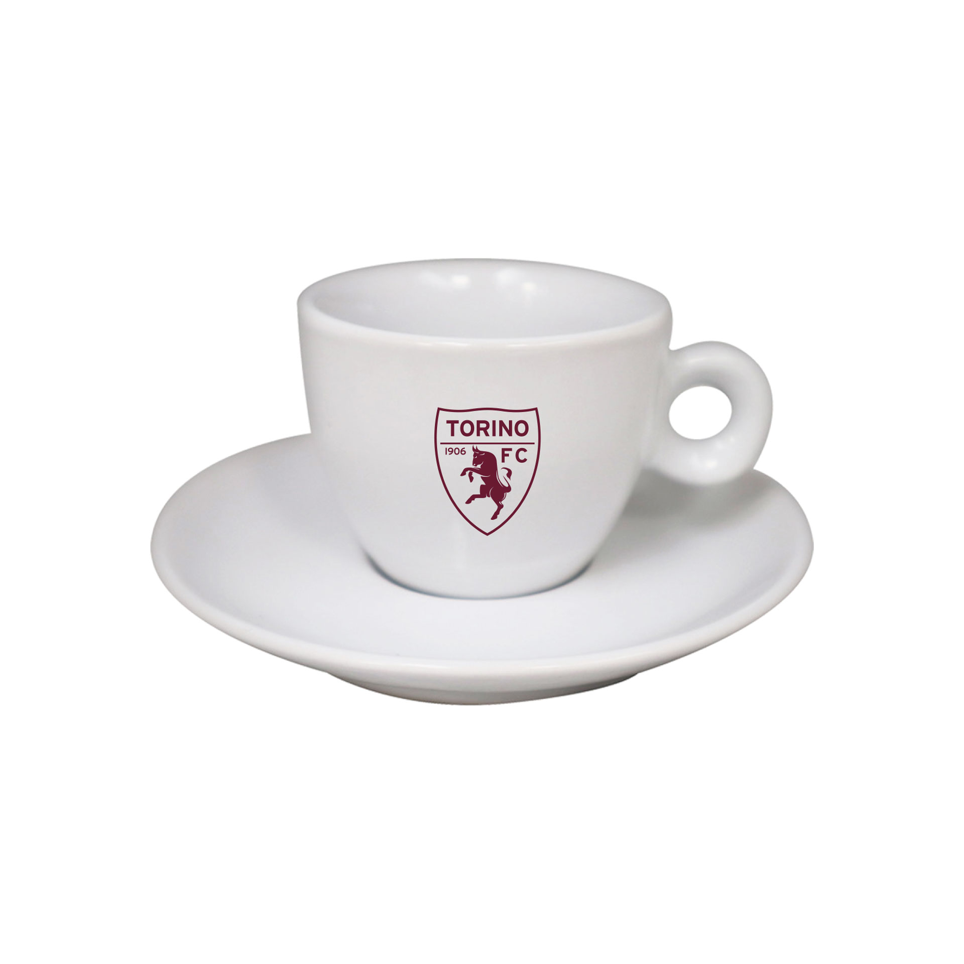 TAZZINA DA CAFFE' CLASSICA CON PIATTINO LOGO STAMPATO 1 COLORE GRANATA SU UN SOLO LATO