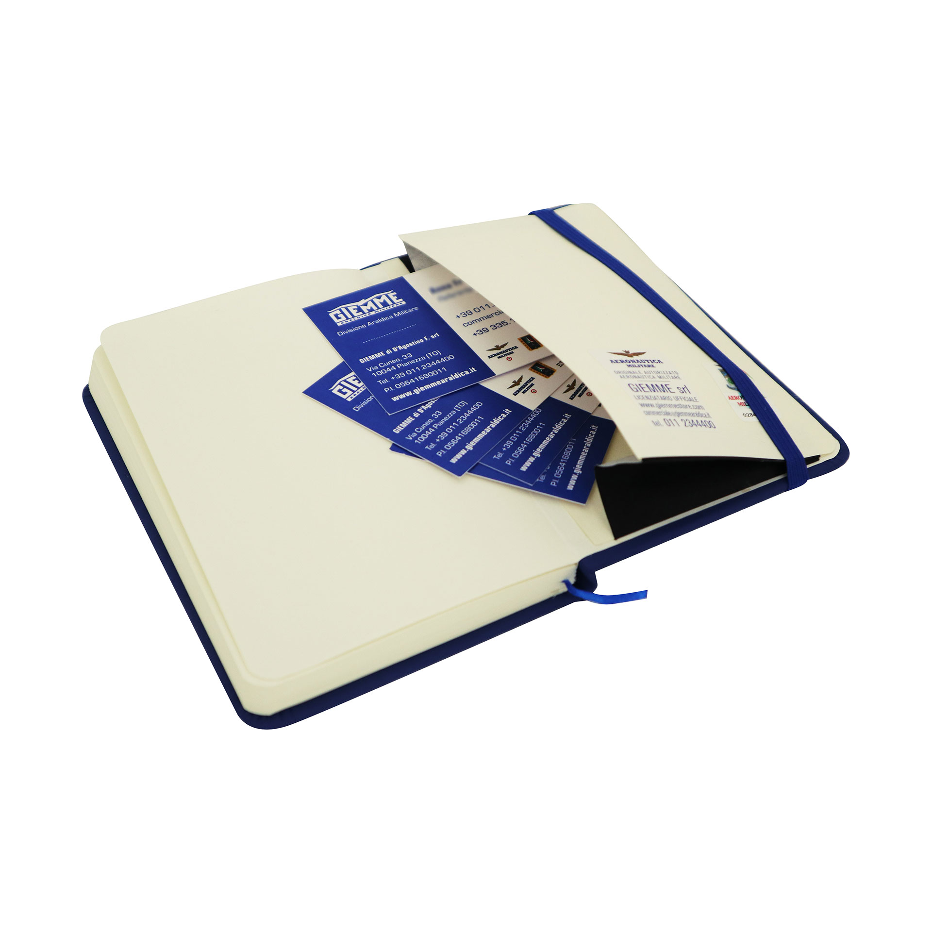 BLOCCO PER APPUNTI 98 FOGLI , COPERTINA IN PU, CORDINO SEGNALIBRO, CHIUSURA CON ELASTICO E TASCA INTERNA STAMPA SOLO SU FRONTE DIMENSIONE 9X14X1,6 CM