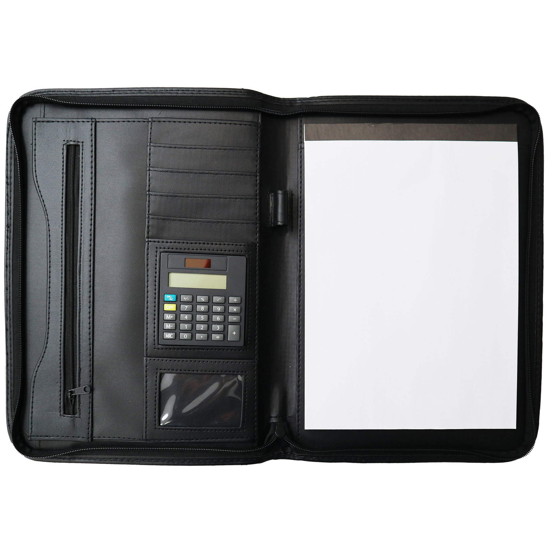 PORTABLOCCO IN SIMILPELLE CON BLOCCO A4 E CALCOLATRICE A 8 CIFRE DUAL POWER INCLUSI DIMENSIONE 26 X 37 X 2 CM