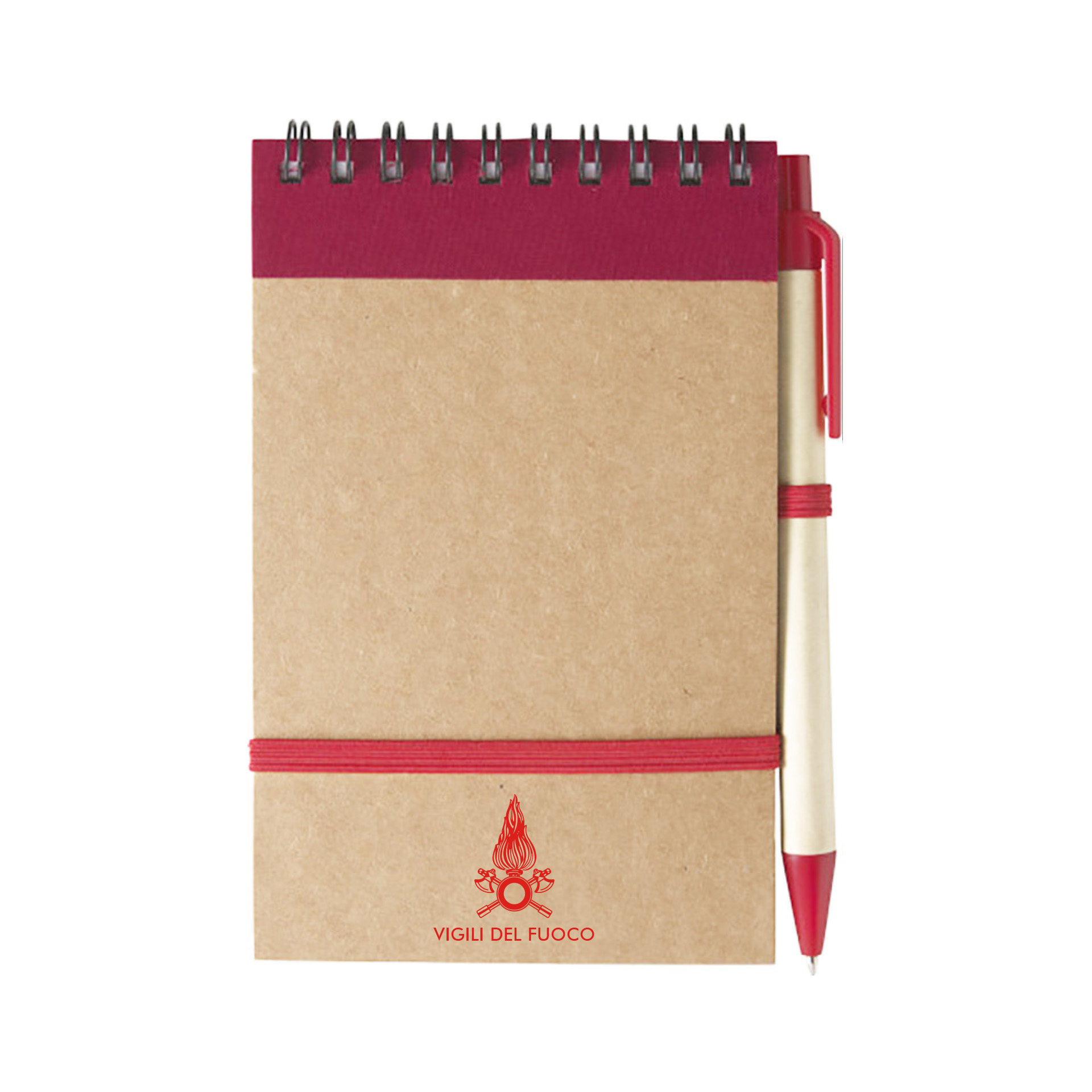 BLOCK NOTES A SPIRALE VIGILI DEL FUOCO CHIUSURA AD ELASTICO CON PENNA RE