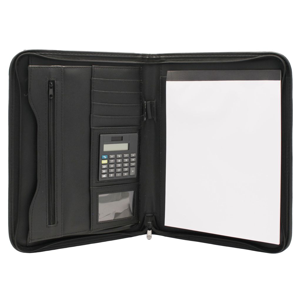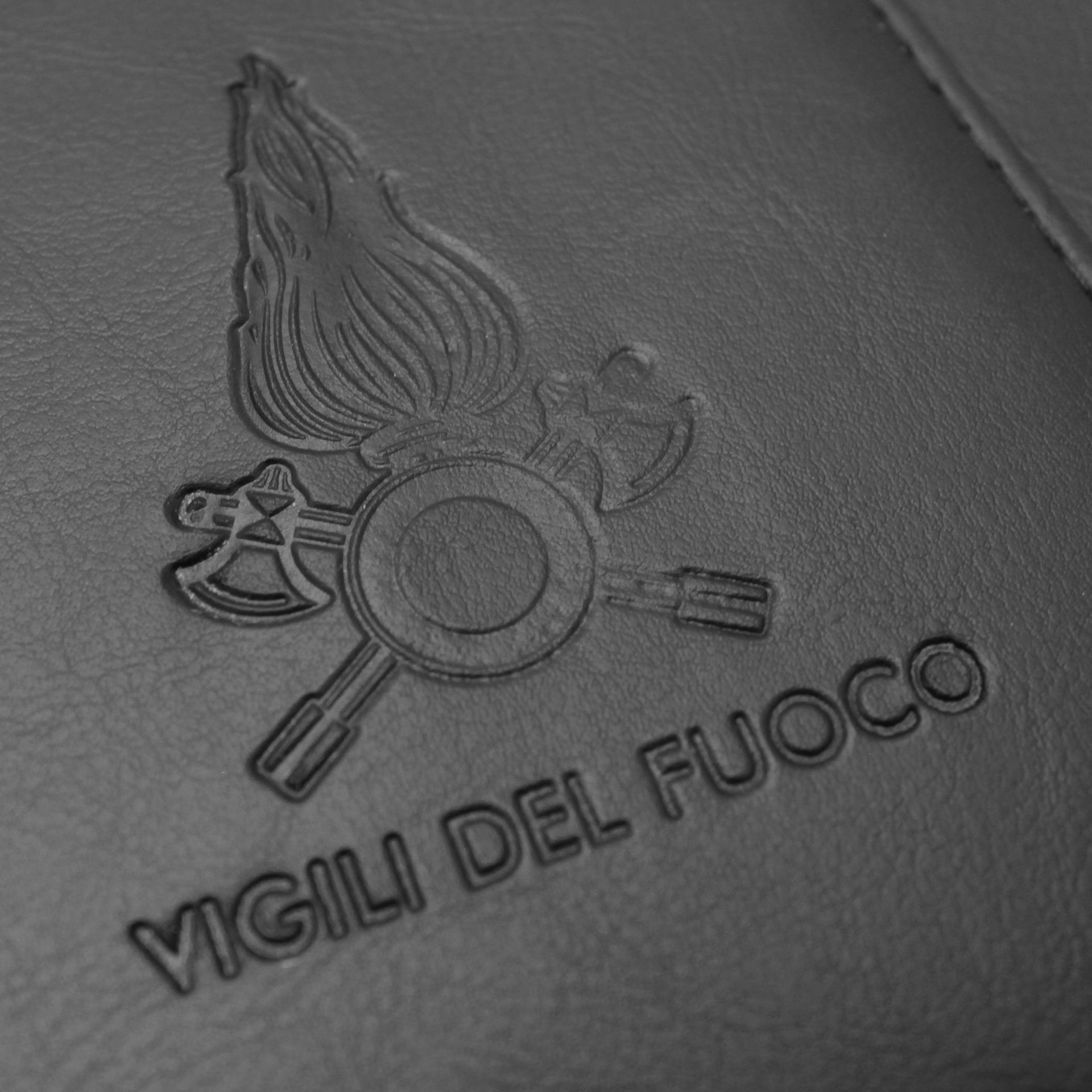CARTELLA PORTABLOCCO IN SIMILPELLE CON BLOCCO APPUNTI E CALCOLATRICE 8 CIFRE, CHIUSURA ZIP, DIMENSIONE 26X37X2 CM, LOGO VIGILI DEL FUOCO