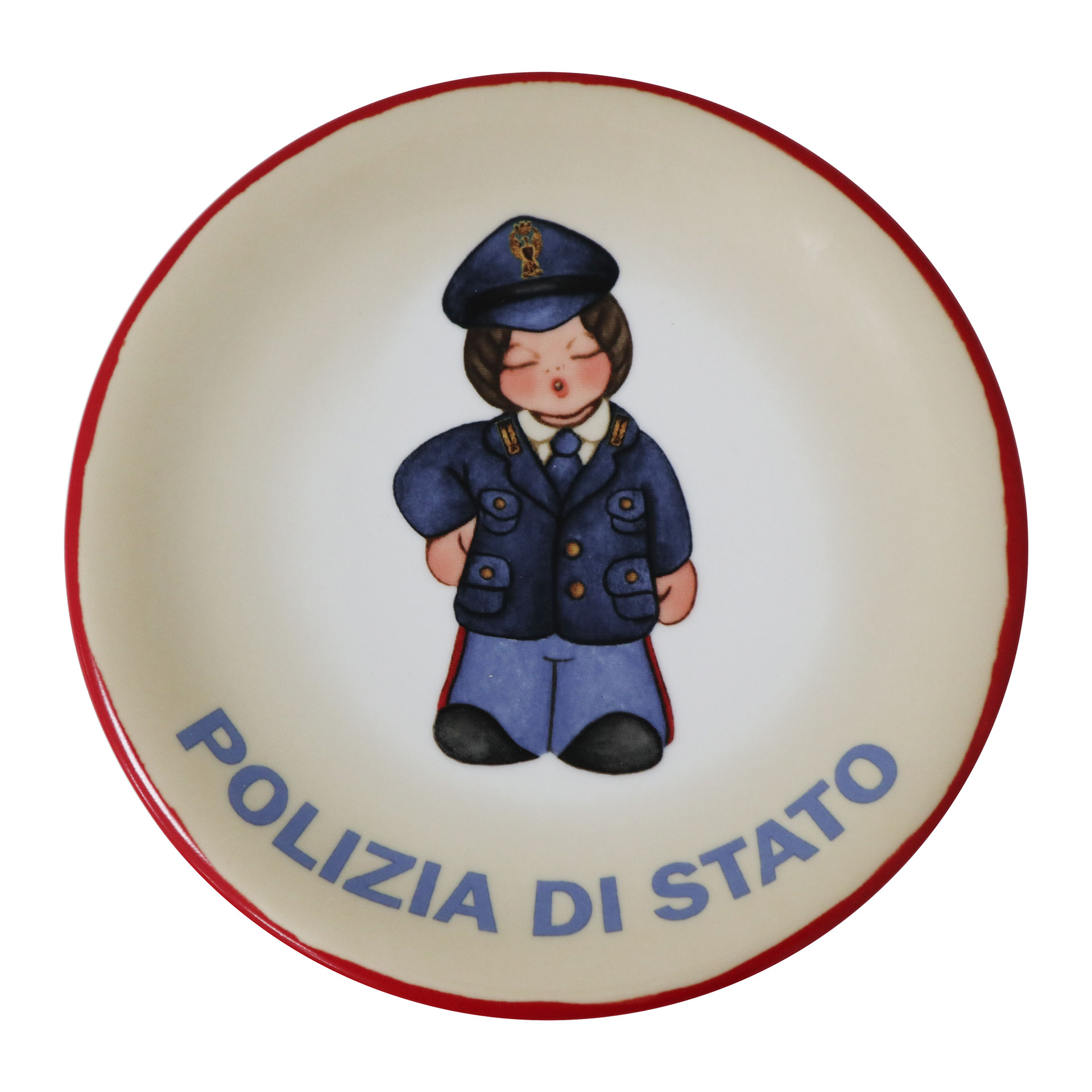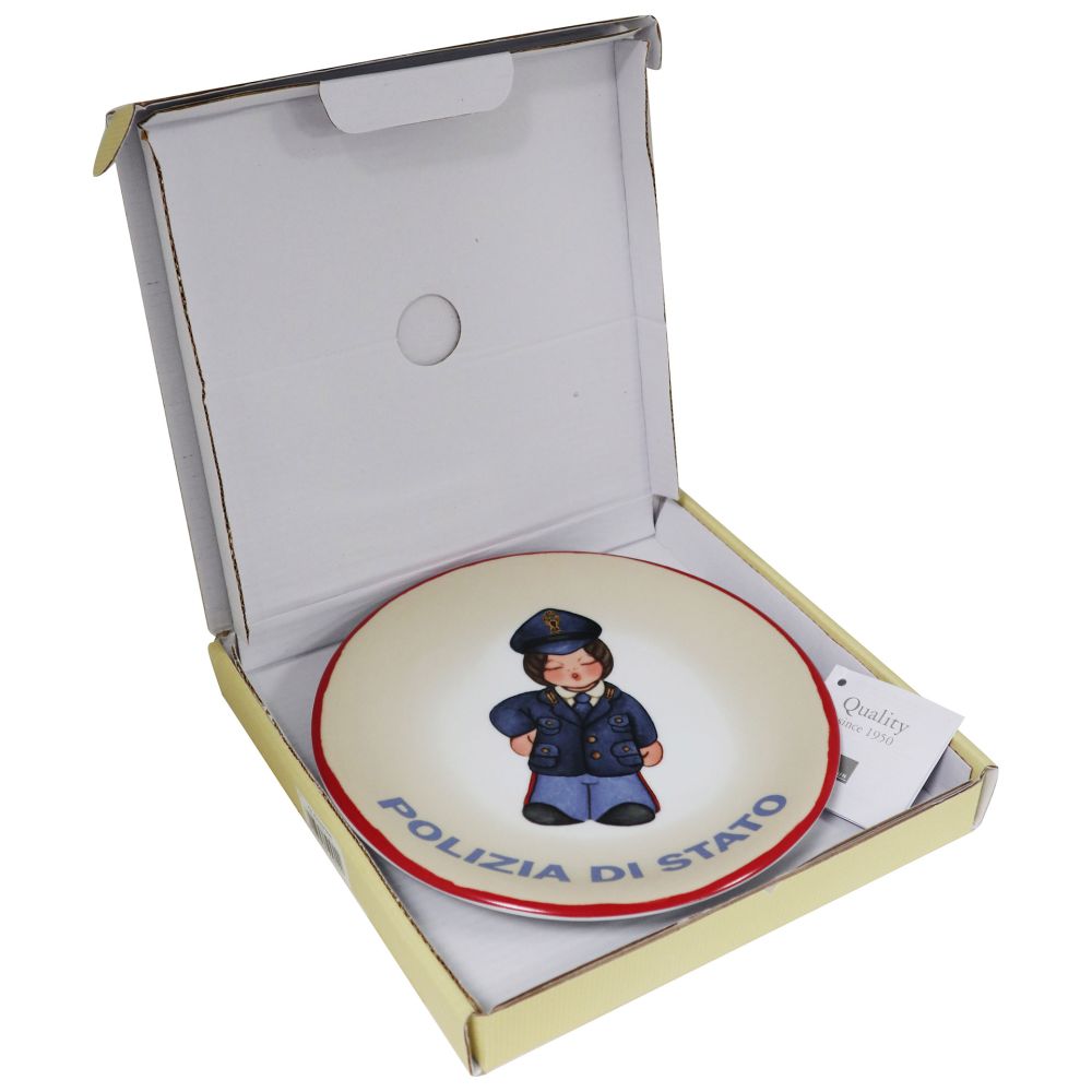 PIATTO DECORATO POLIZIA DI STATO THUN (diametro 19,5cm) raffigurante il classico Angelo Thun con la divisa ordinaria della Polizia di Stato