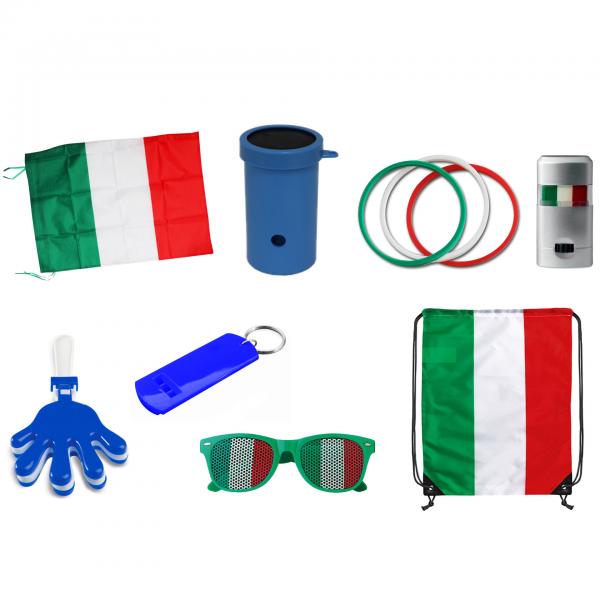 KIT:BANDIERA-BATTIMANO-BRACCI-STICK-OCCHIALI-TROMBETTA-FISCHIE-SACCA