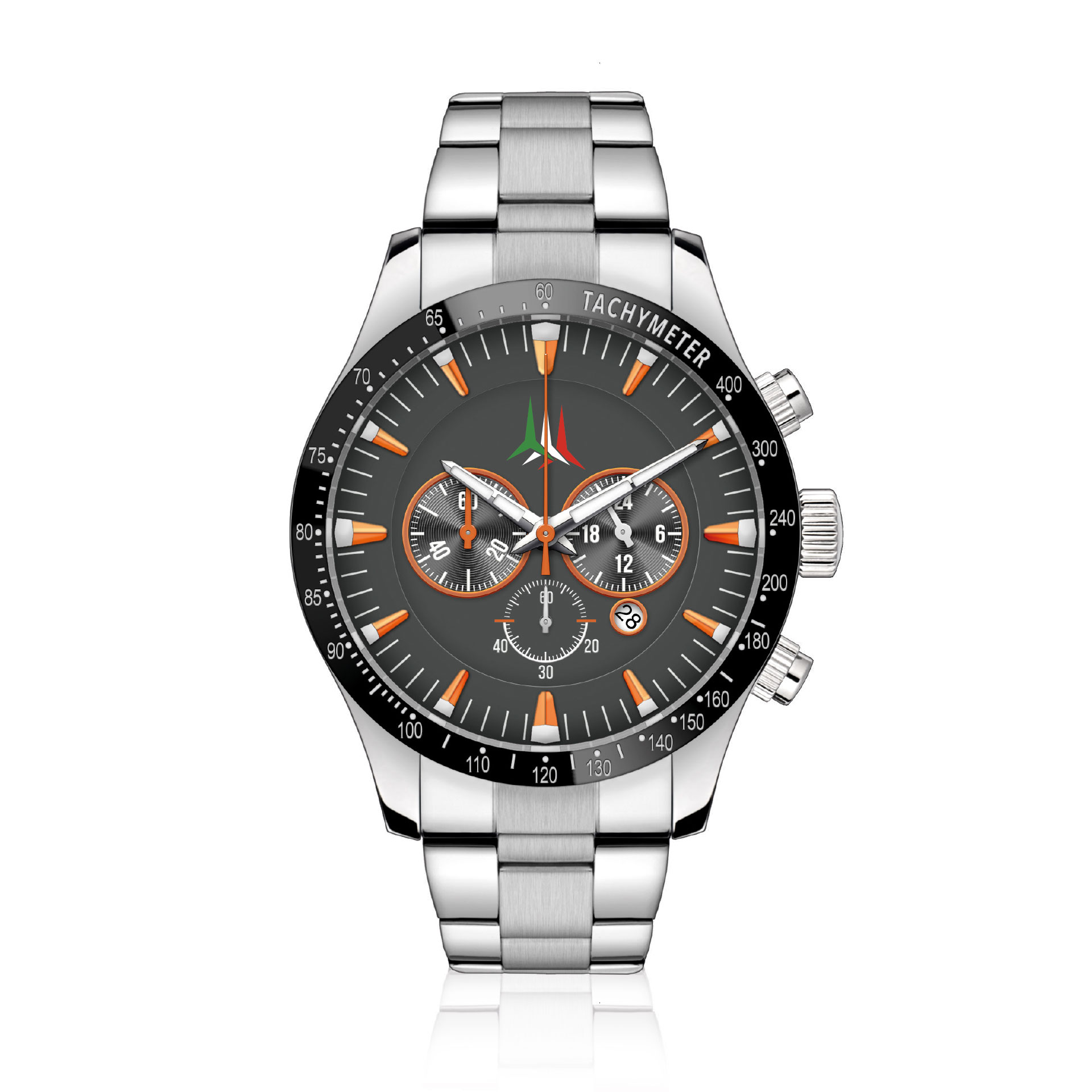 OROLOGIO CON CASSA ACCIAIO ?45 MM MOVIMENTO CRONOGRAFO OS20 MIYOTA BRACCIALE ACCIAIO WATER RESISTANT LOGO FRECCE TRICOLORI