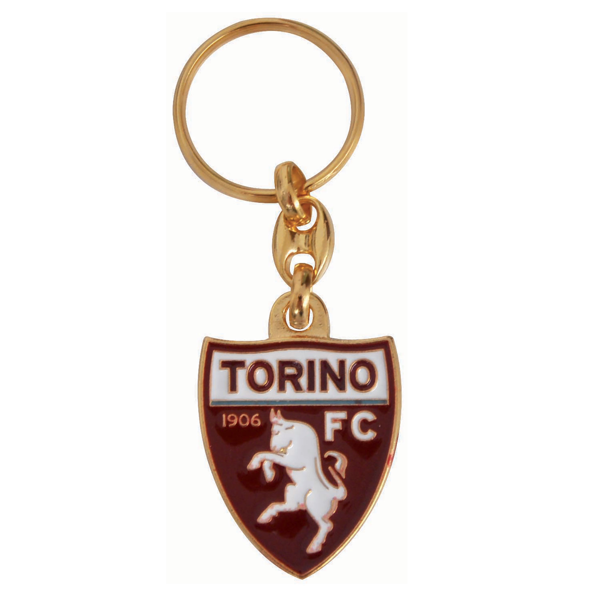 Portachiavi in metallo dorato con logo ufficiale Torino FC smaltato a mano.