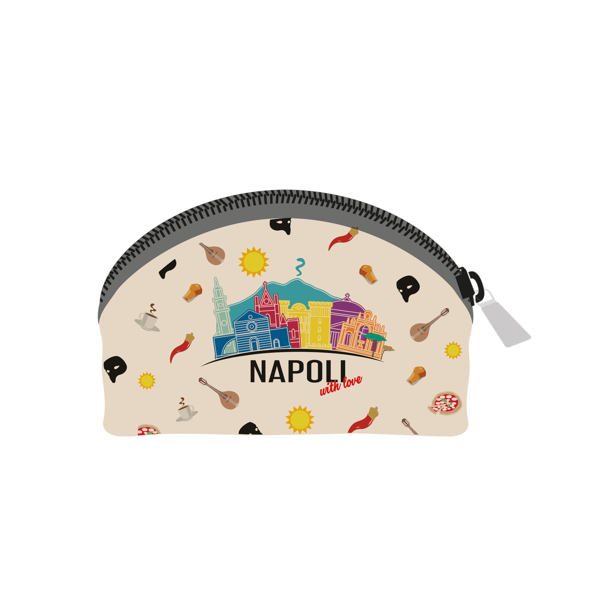PORTAMONETE MEZZALUNA IN ECOPELLE BEIGE 10,5X7X5 CM STAMPA BIFACCIALE NAPOLI WITH LOVE