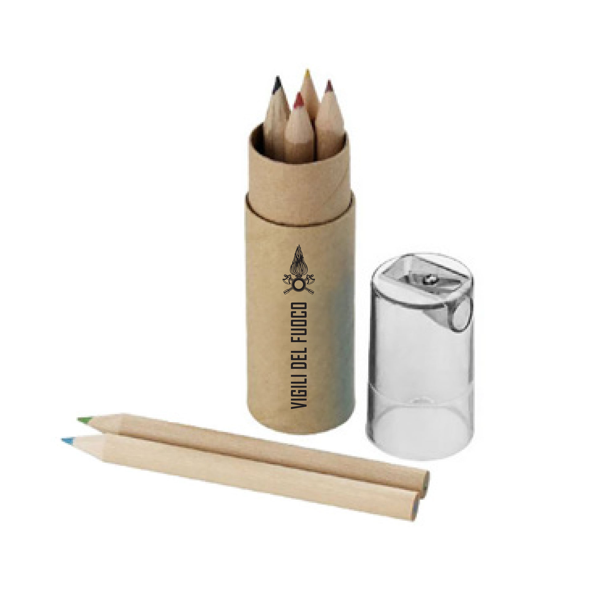 SET 6 MATITE COLORATE VIGILI DEL FUOCO COPERCHIO CON TEMPERAMATITE DIMEN
