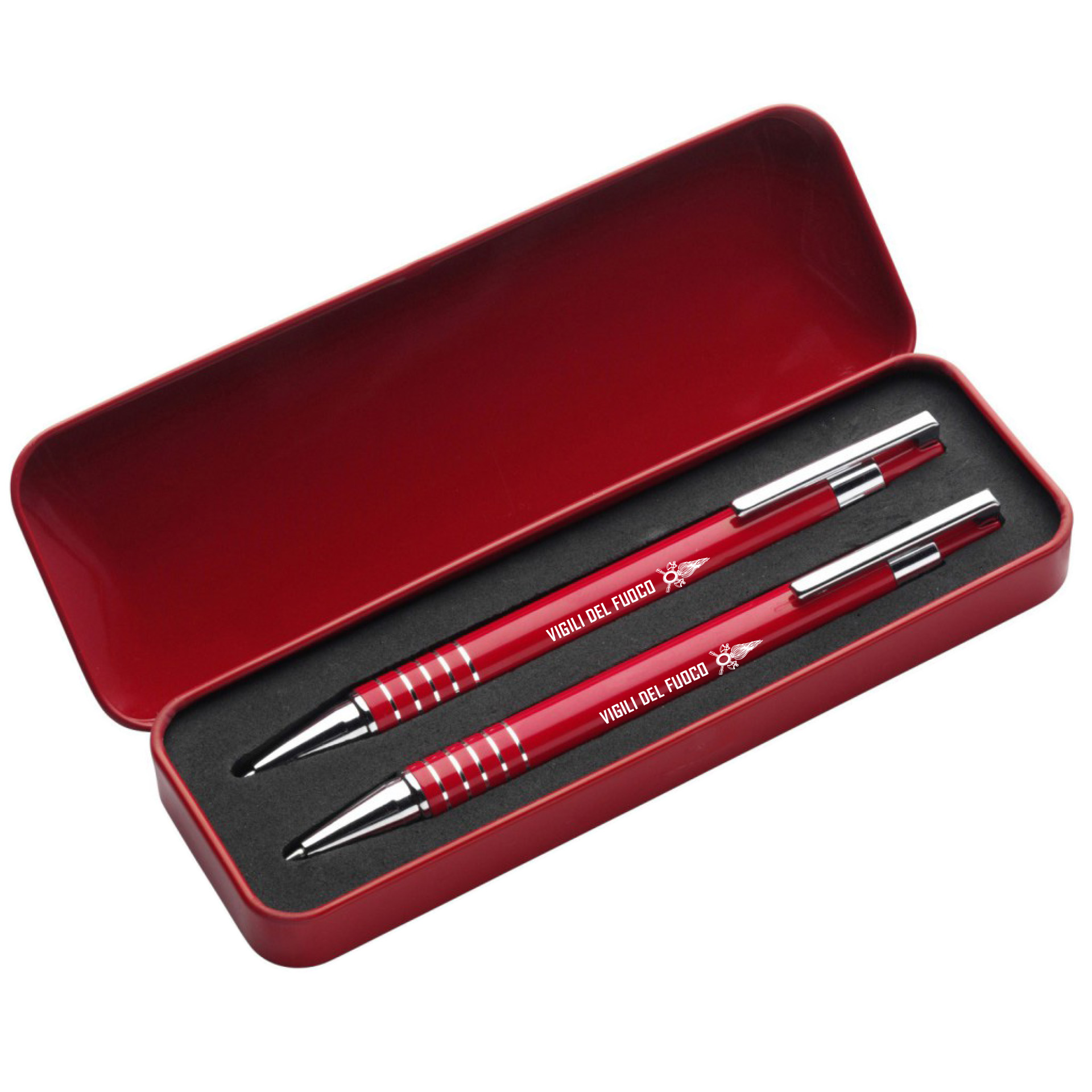 SET PENNA E PORTAMINE VIGILI DEL FUOCO IN METALLO IN ASTUCCIO