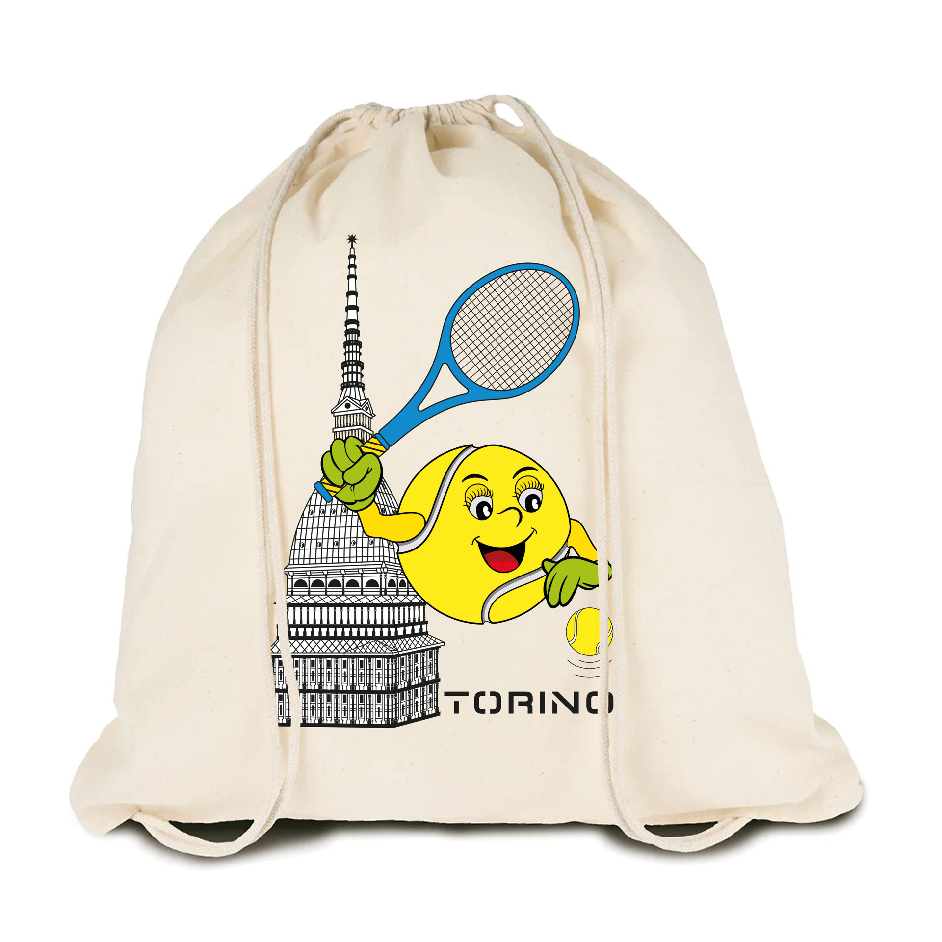 SACCA IN COTONE CON CHIUSURA A STROZZO MOLE CON PALLINA DA TENNIS TORINO