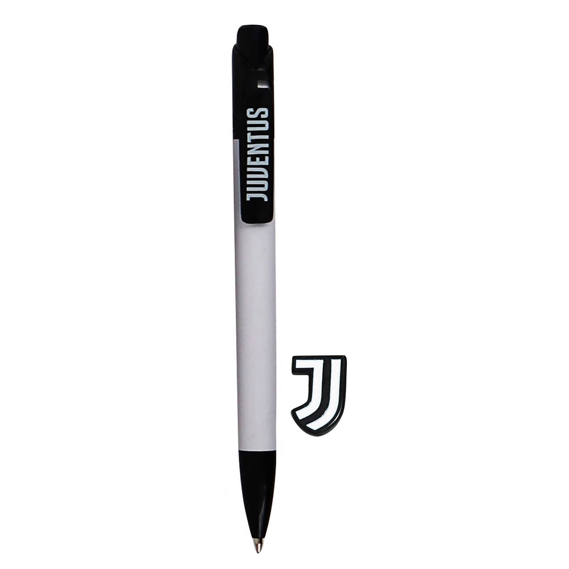 Set distintivo spilla in metallo nero smaltato a mano e penna in plastica (colore fusto assortito). Prodotto ufficiale Juventus FC.