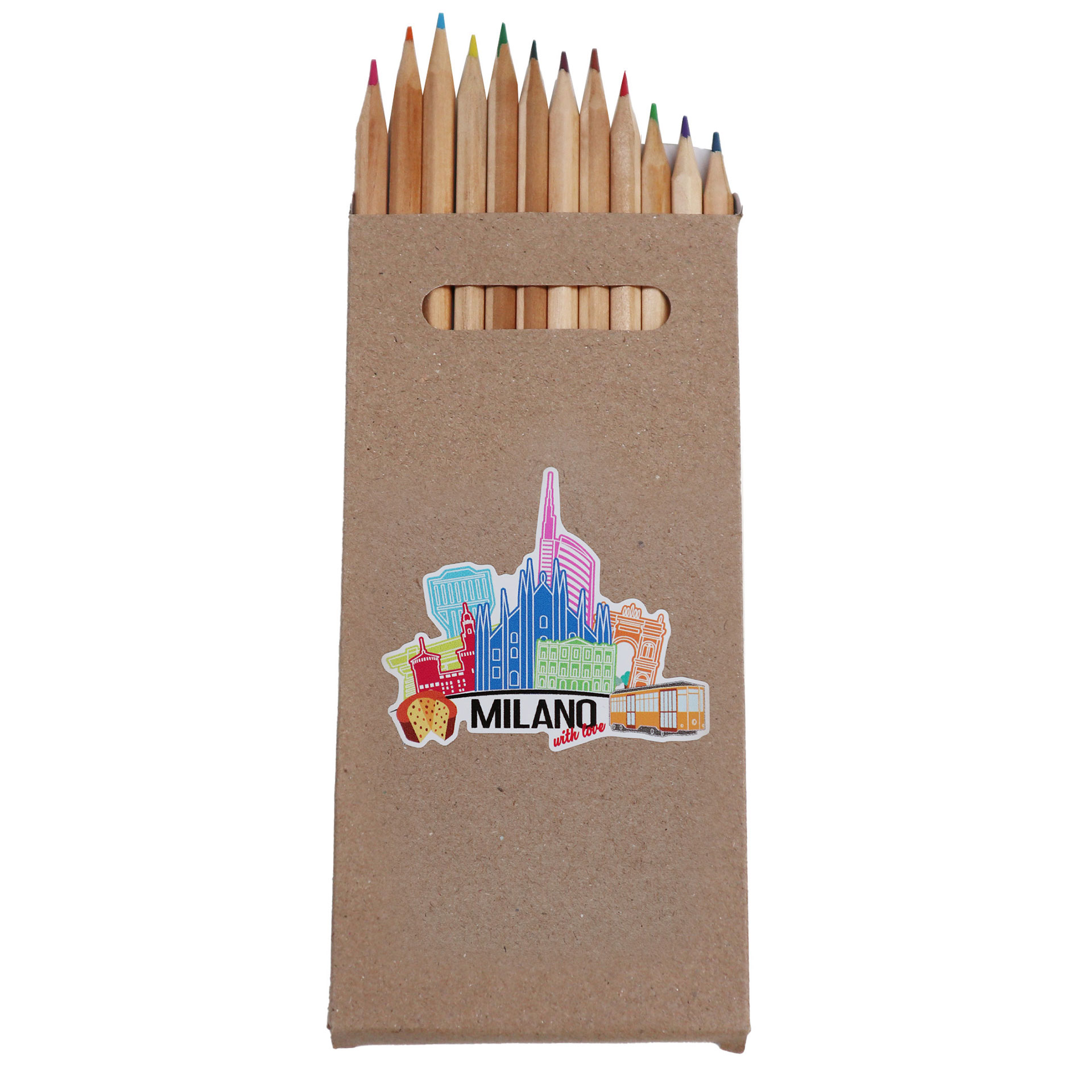 SET 12 MATITE LUNGHE COLORATE CON SCATOLA PERSONALIZZATA MILANO WITH LOV
