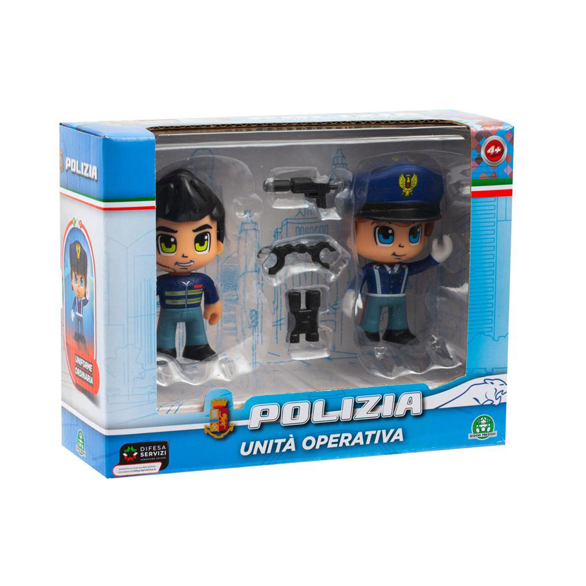 SET 2 PERSONAGGI CON DIVISA POLIZIA E ACCESSORI DA EQUIPAGGIAMENTO