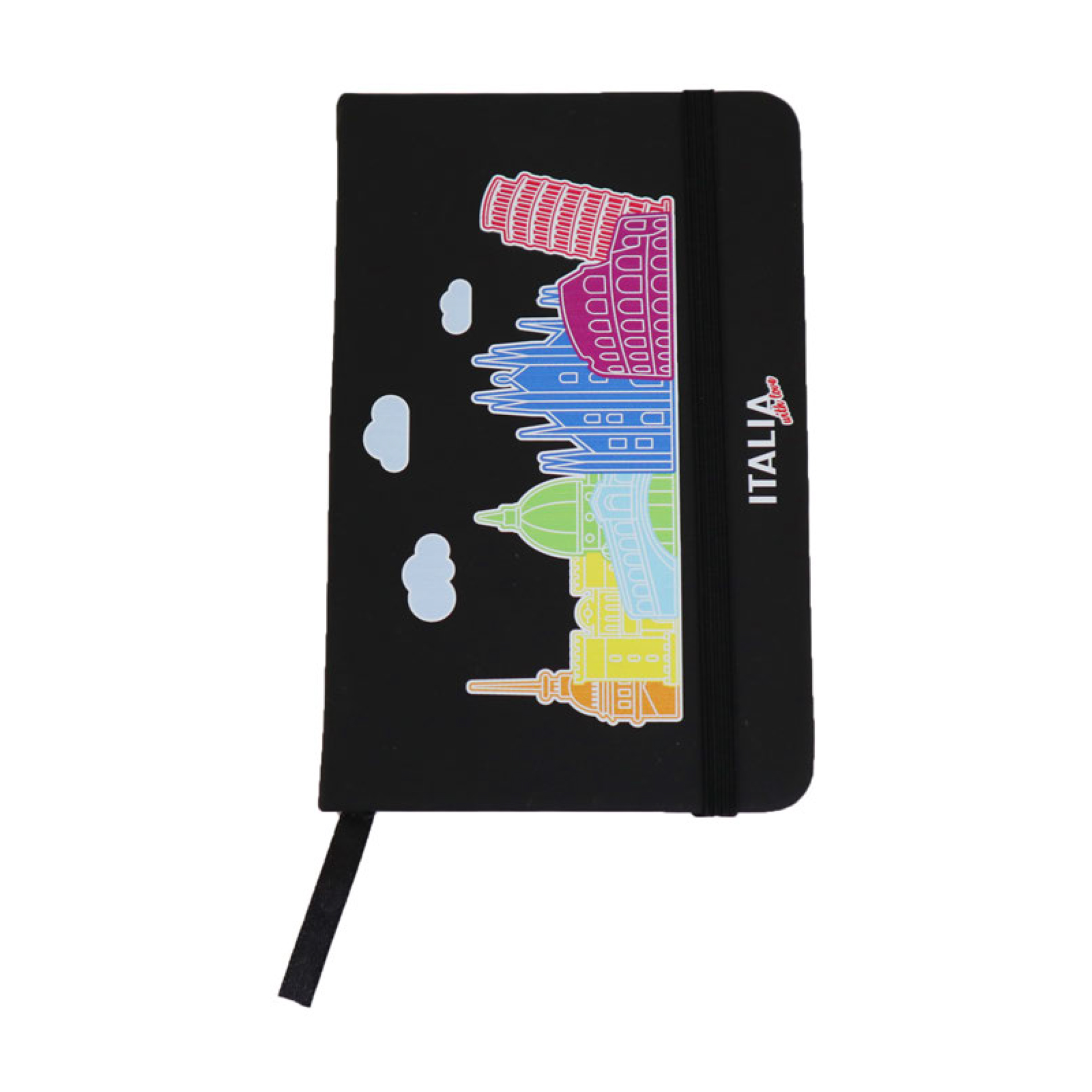 TACCUINO NERO FORMATO A6 CON COPERTINA RIGIDA CHIUSURA CON ELASTICO