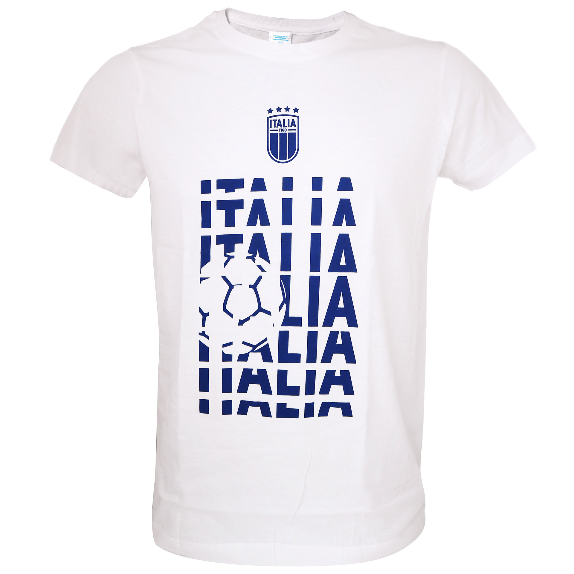 T-SHIRT COTONE BIANCO FRONTE LOGO E SCRITTA ITALIA BLU RETRO NEUTRO TG.L FIGC
