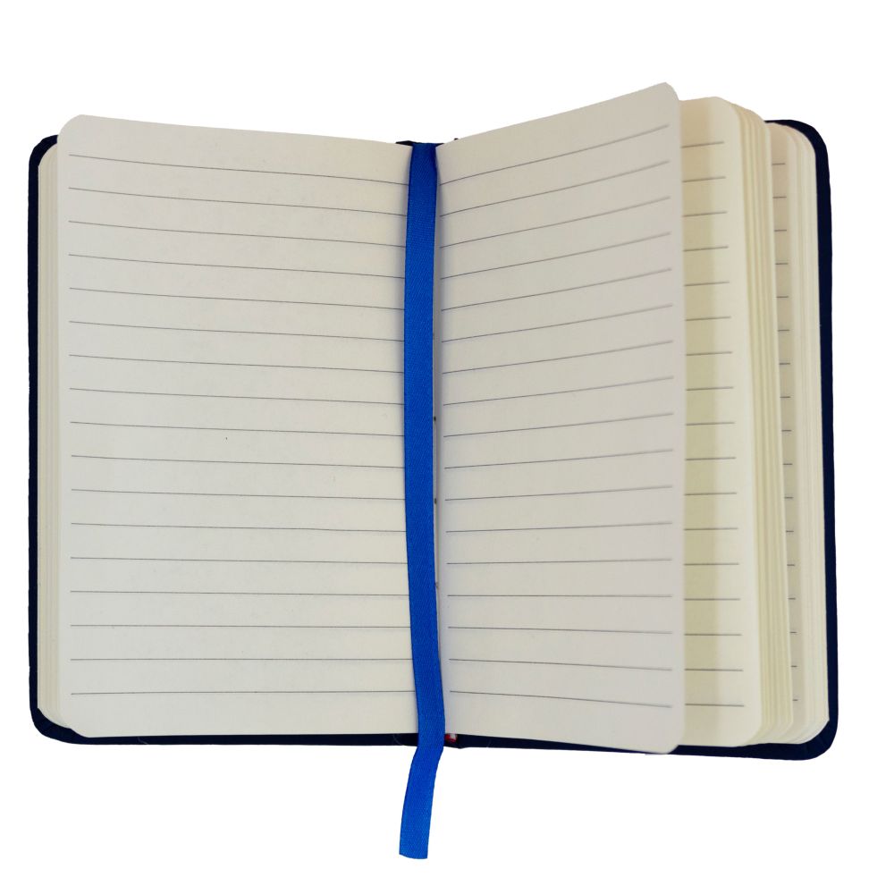 TACCUINO IN PU F.TO A6 FONDO BLU 96 PAG. A RIGHE OLYMPIC EMBLEMA BIANCO