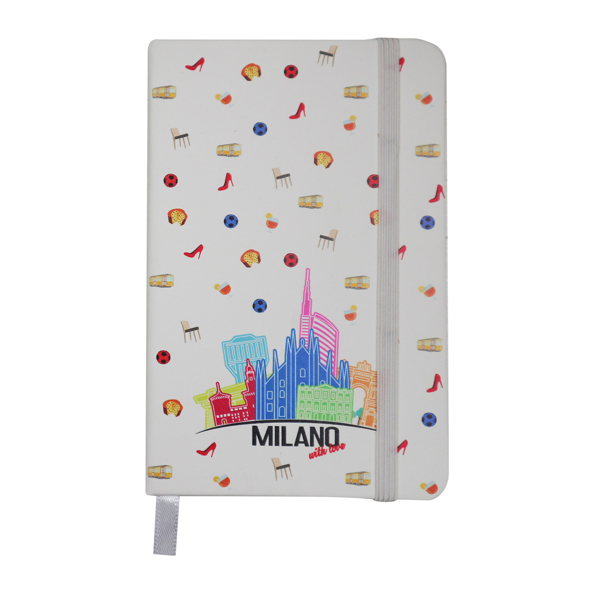 TACCUINO BIANCO FORMATO A6 CON COPERTINA RIGIDA CHIUSURA CON ELASTICO 14X9X1,5 CM MILANO WITH LOVE