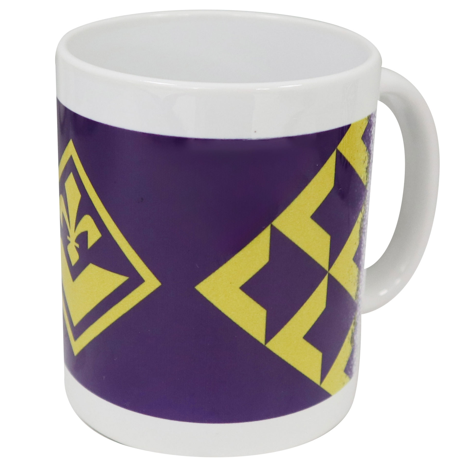 TAZZA IN CERAMICA LOGO FIORENTINA CON TEXTURE V VIOLA E GIALLA