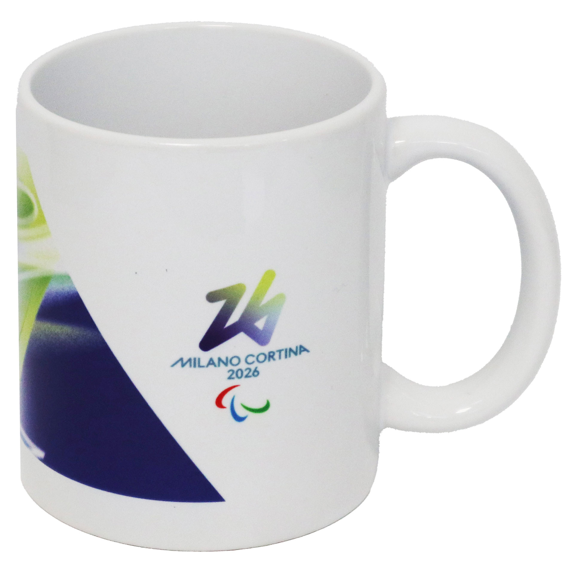 TAZZA MUG OLIMPIADI MILANO CORTINA 2026 IN CERAMICA DA COLLEZIONE DIMENSIONI DIAMETRO 8 CM LOGO PARALYMPIC LOOK VERDE