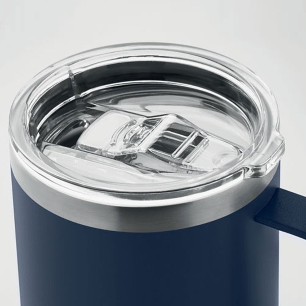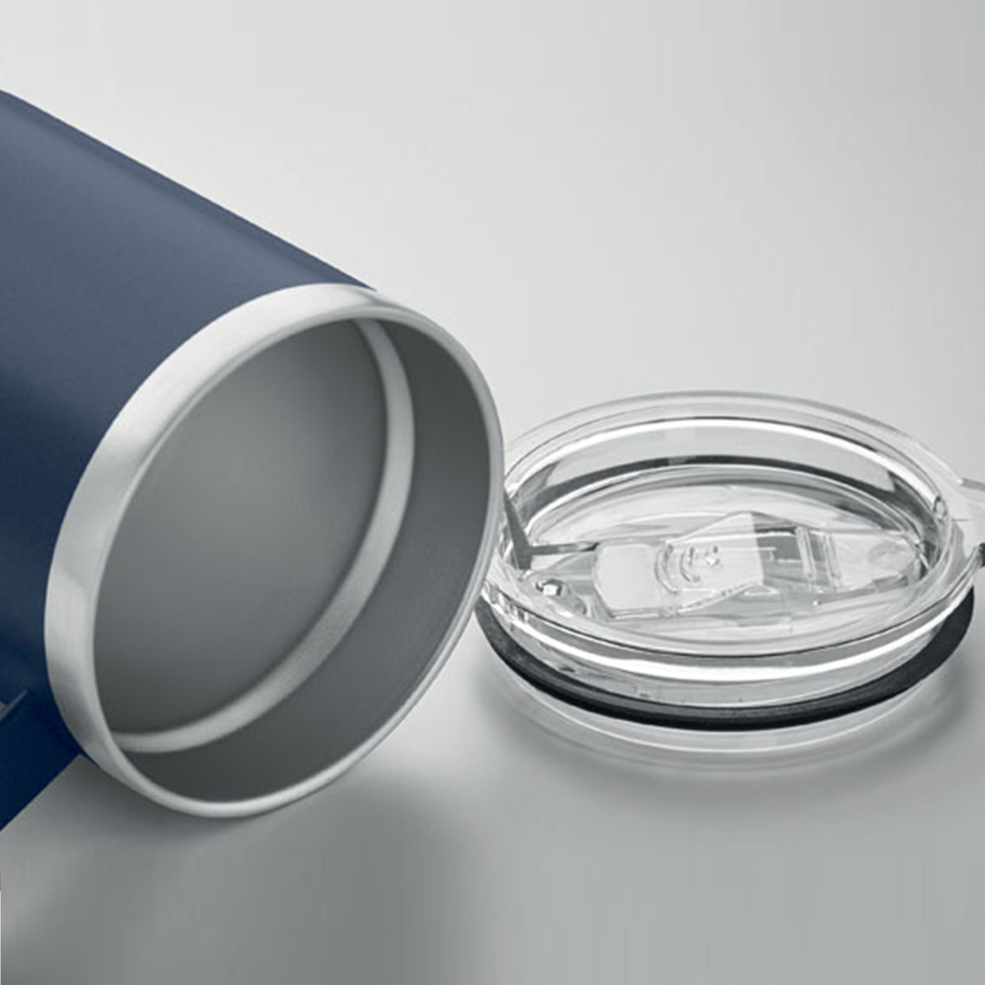 Tazza a doppio strato in acciaio inox riciclato (90% acciaio inox riciclato e 10% acciaio inox) con coperchio scorrevole.